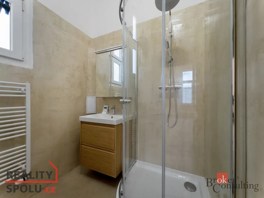 • Koupelna se sprchovým koutem; toaleta je oddělená.