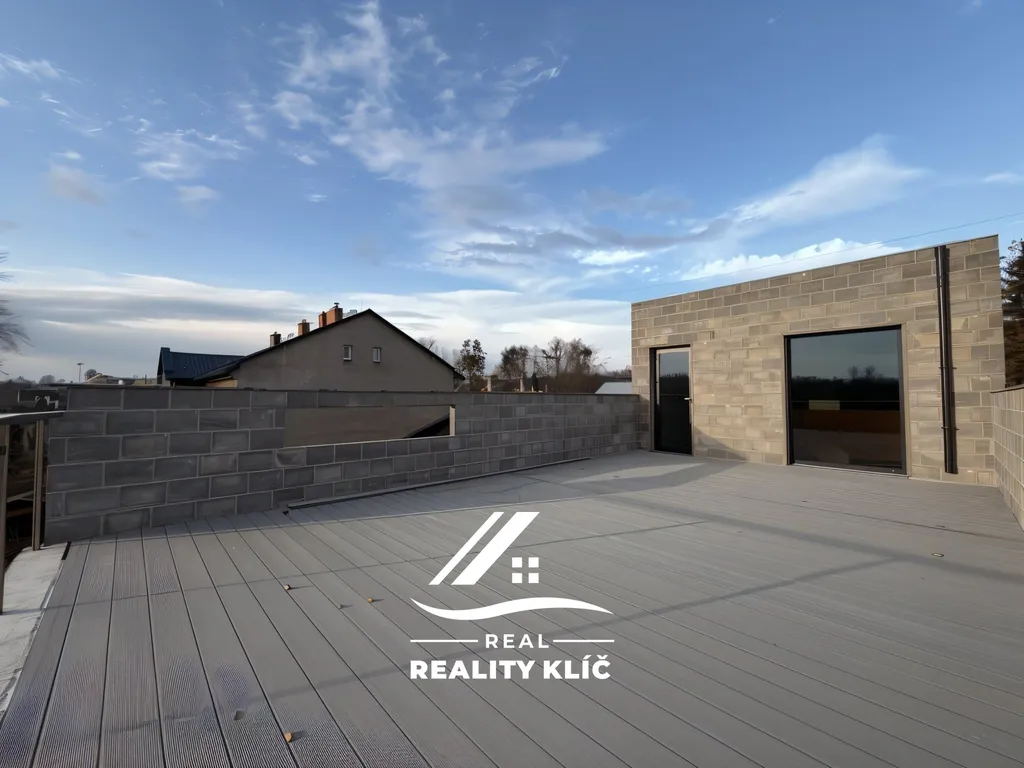 Třetí nadzemní podlaží přístavby nabízí vstup na prostornou střešní terasu s výhledem do okolní krajiny. Terasa dodává budově další využitelnou plochu vhodnou pro venkovní posezení, menší akce, relaxaci nebo doplnění zeleně.
