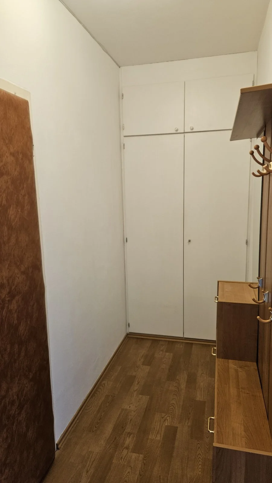 Z předsíně vstup do koupelny a obývacího pokoje. V předsíní vestavěná skříň i odkládací stěna, zrcadlo s vestavěnou policí.