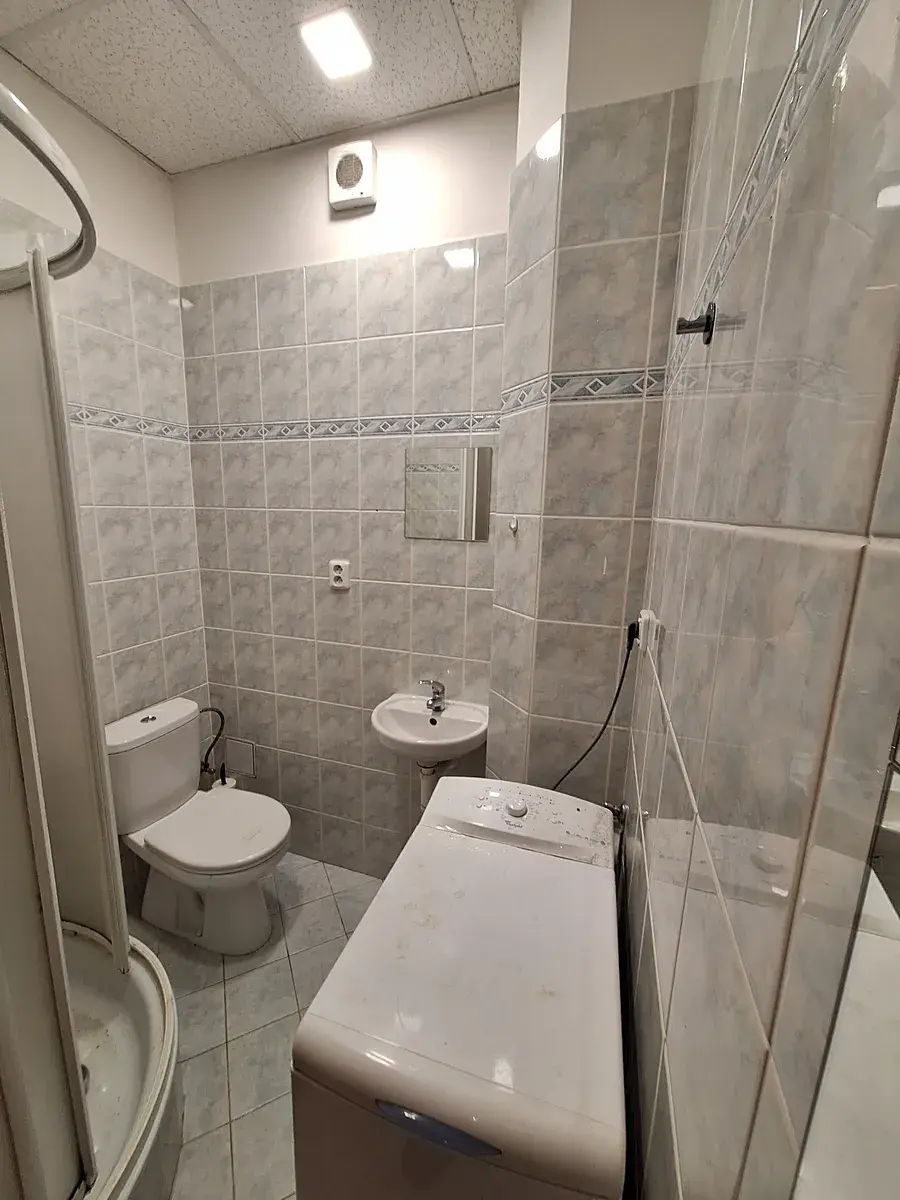 Pěkný byt 1kk, chodbička, koupelna s pračkou, sprchovým koutem a WC.