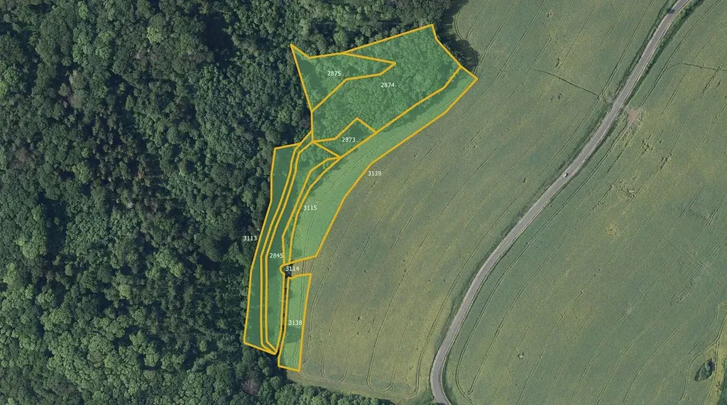Součástí souboru je orná půda o výměře 8 540 m², která sousedí s lesním pozemkem (parcela č. 2874). Takové uspořádání zajišťuje přirozené oddělení pozemků a možnost efektivního využití.