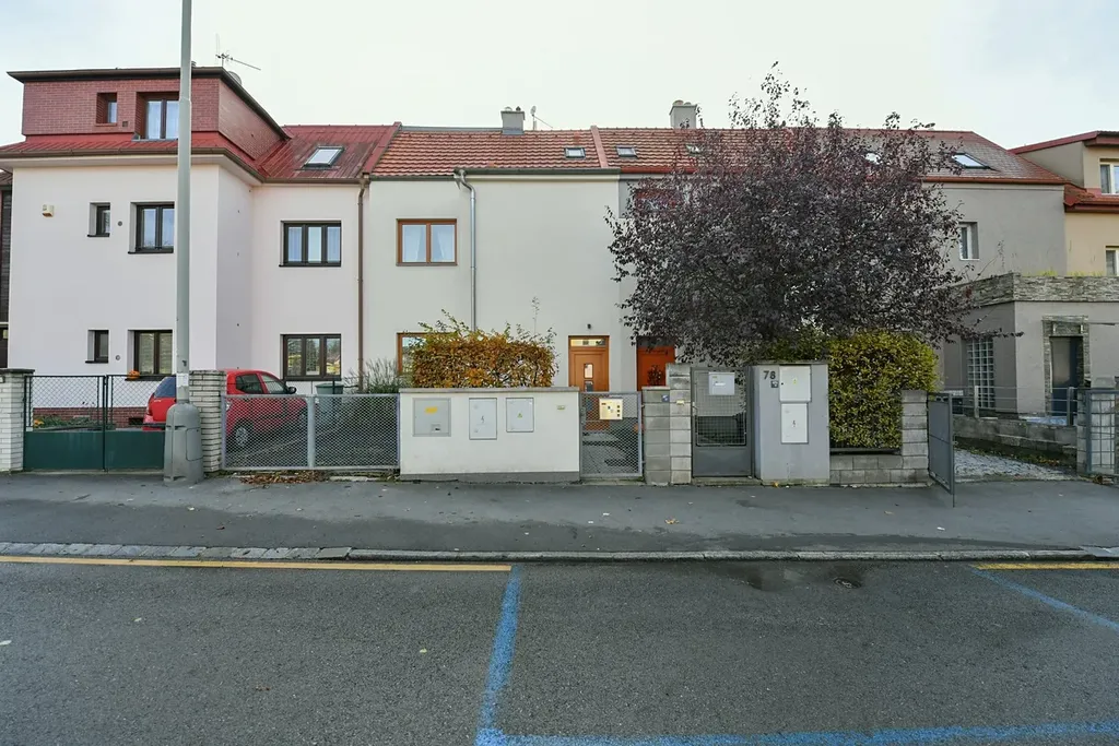 K domu náleží terasa a menší zahrada orientovaná do klidné části za domem, která poskytuje dostatek soukromí i přes centrální polohu domu. Parkování je možné v rámci modrých zón, jeden vůz je možné zaparkovat přímo před dům v rámci objektu.