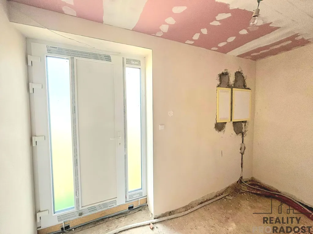 Uvnitř najdete vypínače, zásuvky a kompletní elektroinstalaci, která je připravená na podlahové vytápění, klimatizaci, solární panely, fotovoltaiku, tepelné čerpadlo, bezpečnostní systém, elektrické rolety, kamery a internet. V obývacím pokoji je příprava na krb, který zpříjemní chladné večery. Dům je zateplen a je možné jej dokončit dle přání budoucího majitele.
