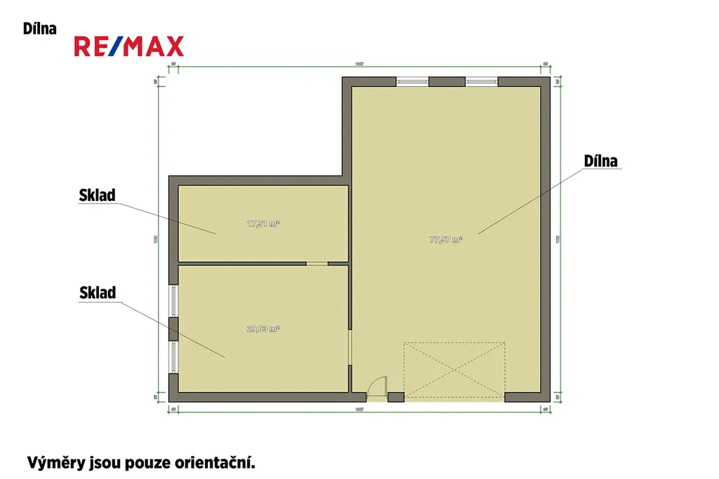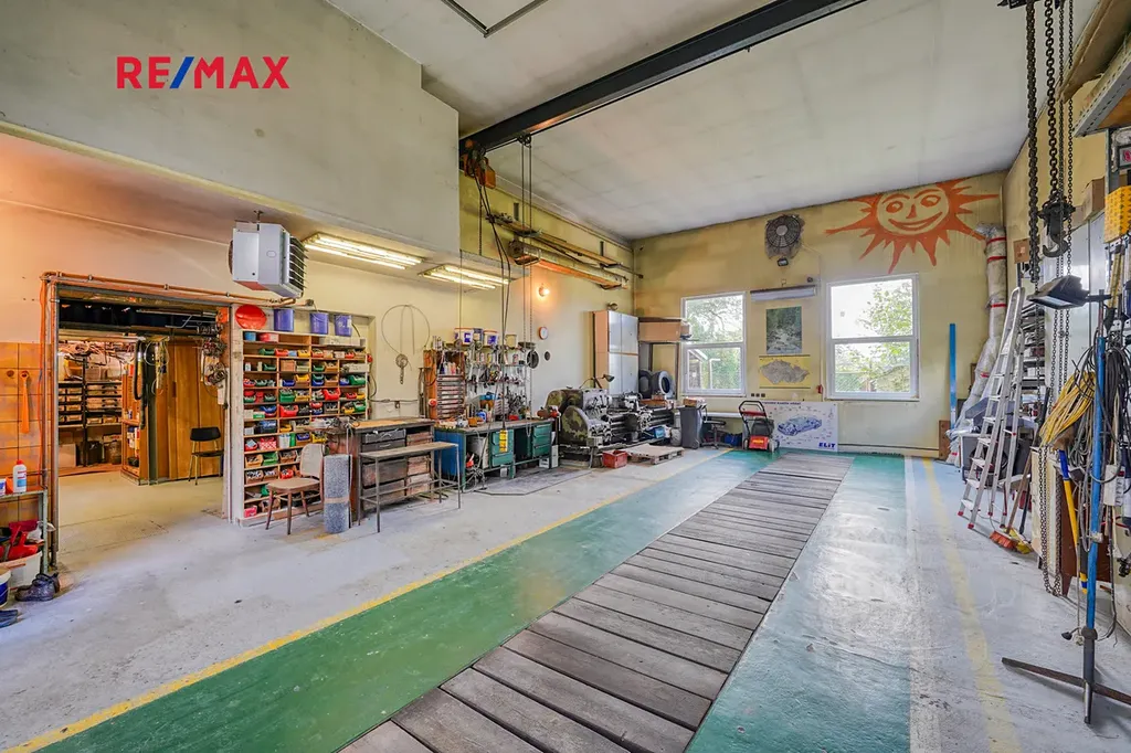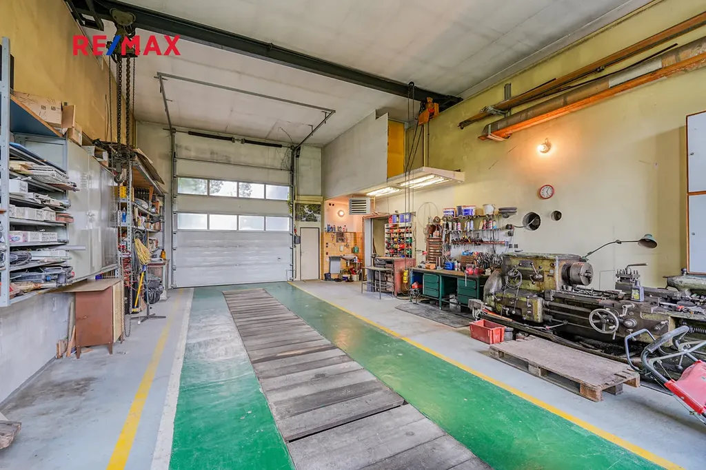 Hala disponuje pracovní plochou o výměře 78 m² + dva sklady s celkovou plochou dohromady 47 m². Hala je vybavena elektrickými rolovacími vraty, posuvným jeřábem a pracovními stoly.