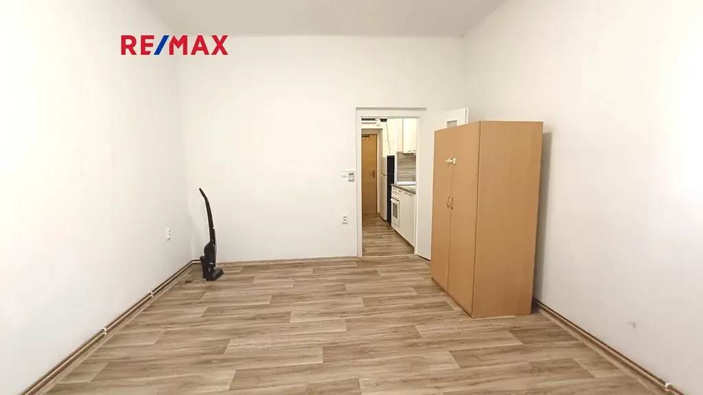 Byt se sestává z obývacího pokoje, malé kuchyňky, koupelny s WC a spíže. Byt je z roku 2022 po rekonstrukci, s novou kuchyňskou linkou, novými spotřebiči, nové podlahové krytiny a vnitřní dveře, nová elektroinstalace a rozvody vody a odpadu. Byt je vytápěn radiátory, napojenými na plynový kondenzační kotel s průtokovým ohřívačem vody.