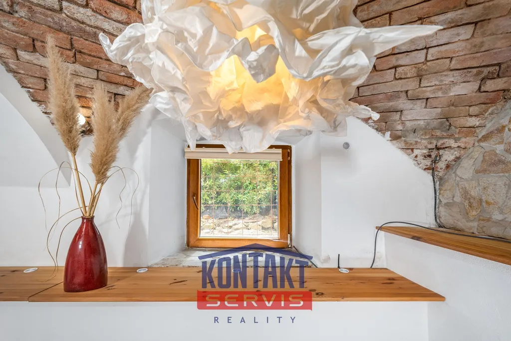 Přízemní apartmán je skutečným klenotem – pyšní se nádherným klenbovým cihlovým stropem, který dodává prostoru jedinečný charakter. Vstup je možný z interiéru domu i přímo ze zahrady. Součástí je vybavená kuchyň, soukromá sprcha s toaletou a přístup na spodní kamennou terasu.