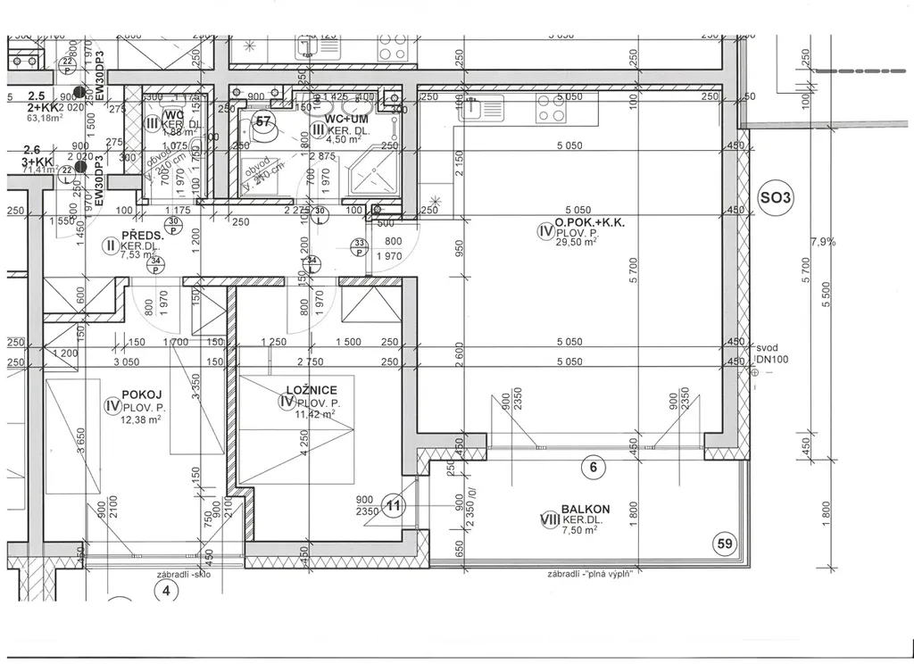 Tento byt zde uvádíme jako modelový, v prodeji jsou ještě další byty 3+kk umístěné v různých podlažích domu. K dispozici jsou pro Vás také byty 2+kk.