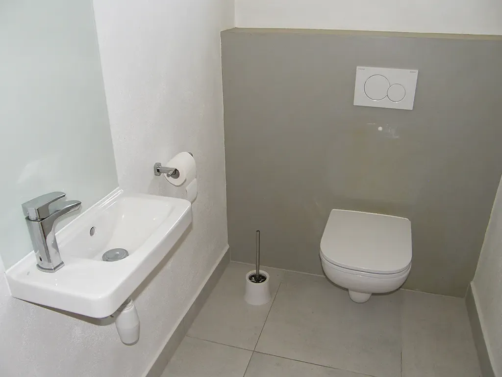 Ve 2.NP je potom k dispozici prostorná místnost pro návštěvy, která může být využita i jako pracovna, nebo jako další pokoj v domě, na kterou navazuje vstup na plochou střechu, která může být využita jako terasa a dále je zde k dispozici koupelna se sprchou, umyvadlem a WC.