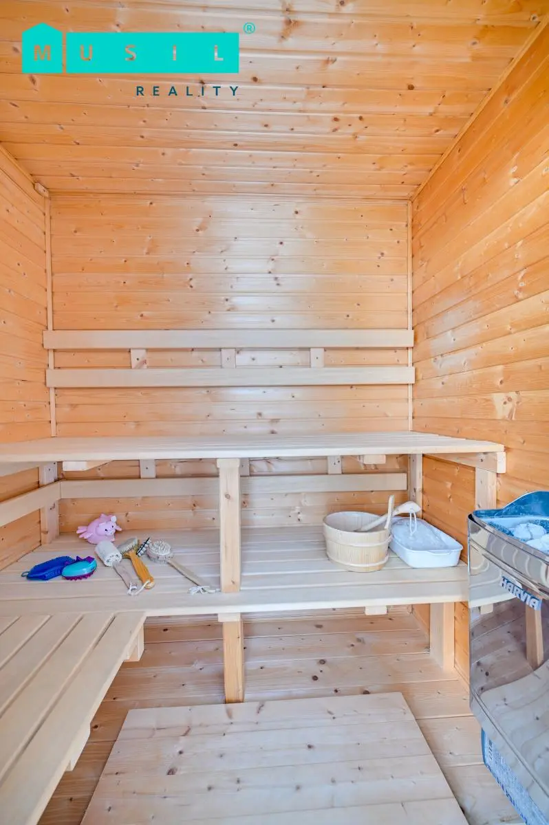 Dispozičně velmi zajímavým prvkem je soukromá sauna, která rozděluje jednu z teras na dvě samostatné části, díky čemuž má každý z pokojů vlastní venkovní prostor. Terasa je navíc vybavena zatahovací zástěnou pro maximální soukromí. Byt je orientován na severní a jižní stranu, je vybaven klimatizací a vnitřními žaluziemi ve dvou pokojích a vnitřními panelovými závěsy v dalších dvou pokojích.