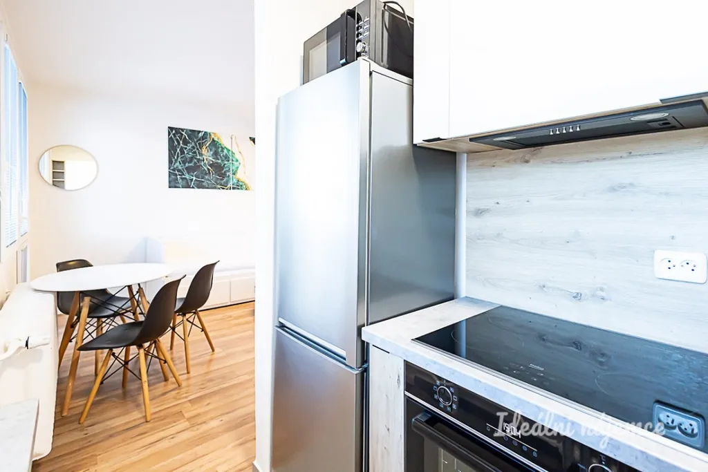 Nabízíme k dlouhodobému podnájmu příjemný a kompletně zařízený byt 1+kk v klidné části Prahy 4 – Michle. Tento byt o výměře 29 m² se nachází v prvním patře udržovaného panelového domu s výtahem a představuje ideální volbu pro jednotlivce či pár, kteří hledají bydlení s výbornou dostupností do centra a veškerým komfortem. Velkou předností bytu je vlastní balkon a praktický sklep, který poskytuje dostatek místa pro uložení sezónních věcí.