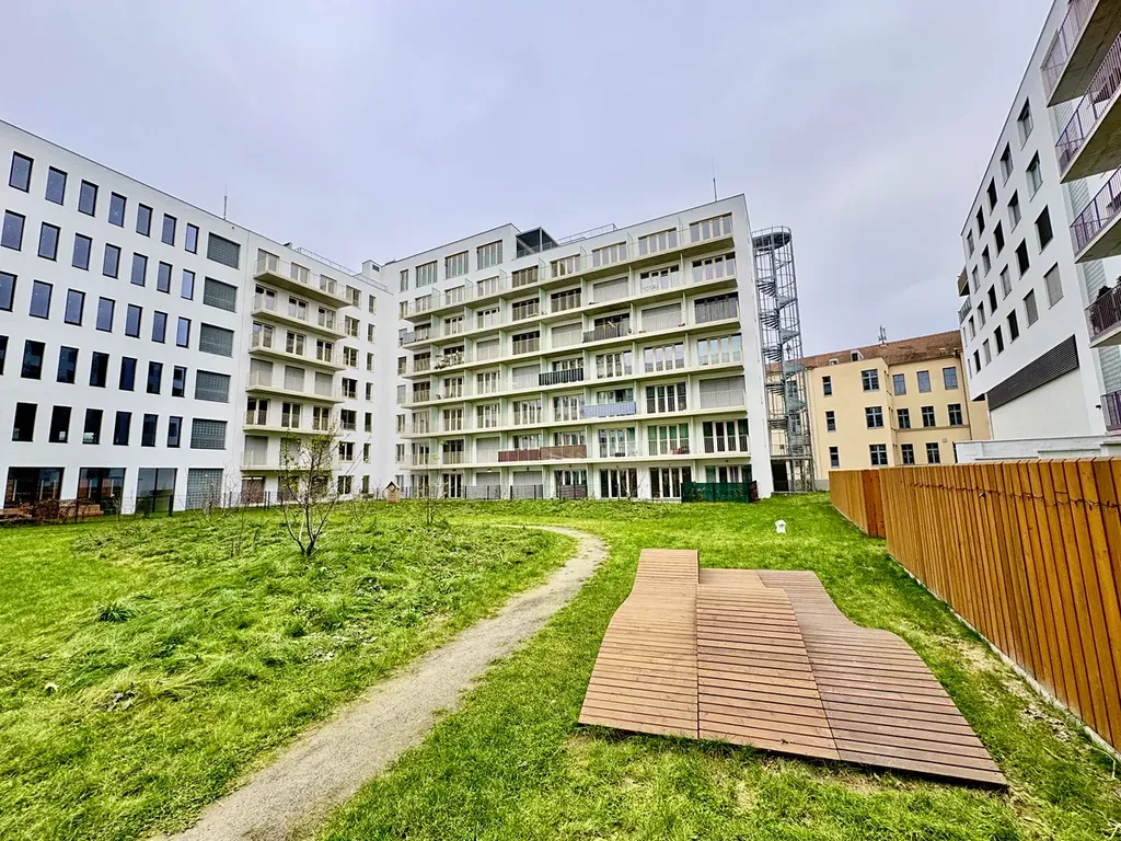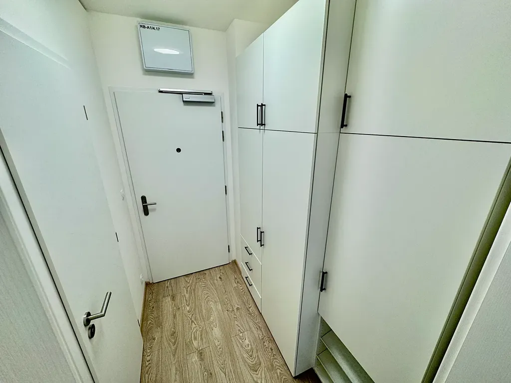 Hledáte menší byt a rádi byste bydleli kousek od centra? Po vstupu do bytu najdete chodbu s praktickými úložnými prostory, z které se vchází do pokoje rozděleného na obývací a odpočinkovou část. Kuchyně je vybavená moderními spotřebiči (sklokeramická varná deska, trouba, mikrovlnka, lednička, pračka) a nabízí veškerý komfort. V pokoji můžete usednout do pohodlné sedačky nebo rovnou spočinout na velké posteli. Pokoj je prosvětlen velkými francouzskými okny se vstupem na balkón s výhledem do soukromého parku. Ideální místo na relaxaci po dlouhém dni – knížka, kafe a klid.