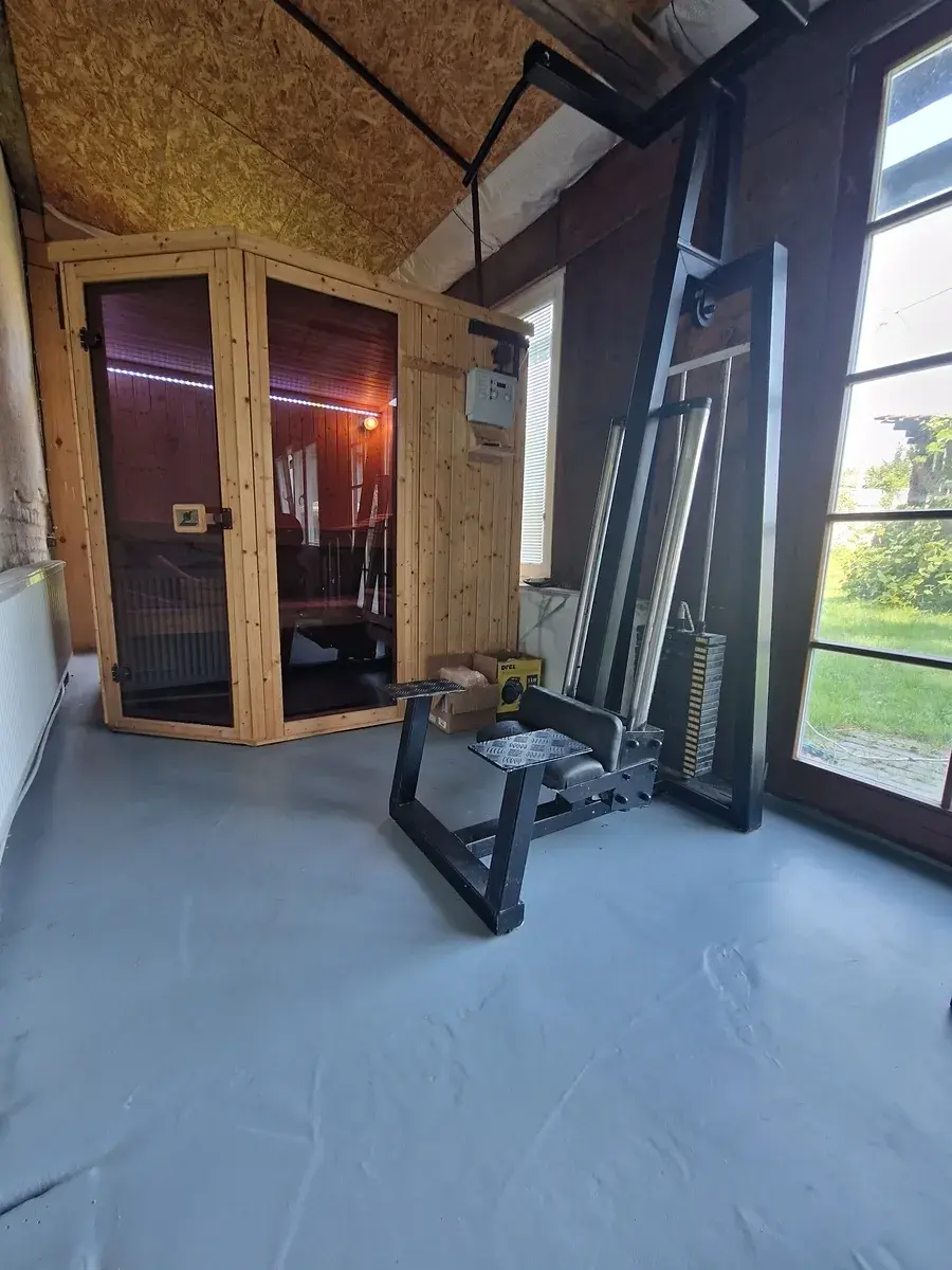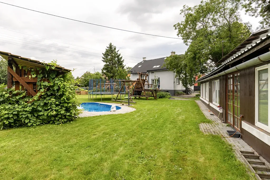 Součástí vybavení je terasa (4×3 m), bazén (7×3,5 m), finská sauna, domácí fitness centrum, pergola. Zahrada je udržovaná, osázená mladými ovocnými stromy a keři.