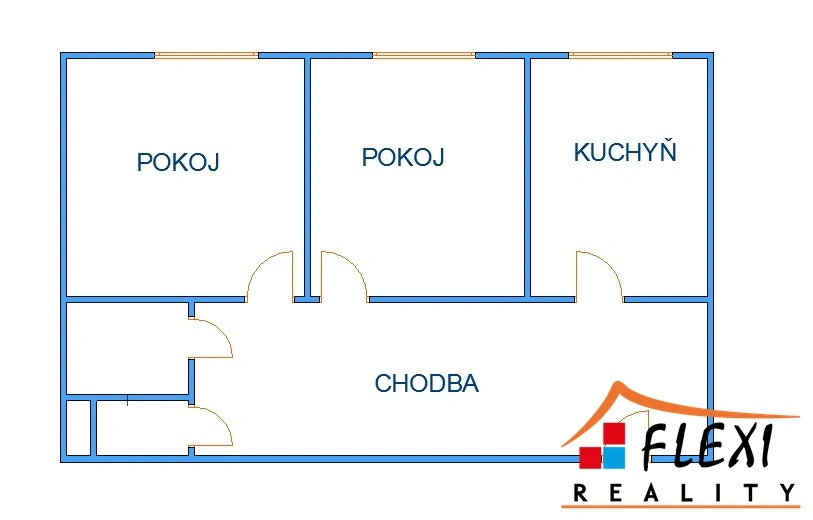 Pokoje jsou neprůchozí. Byt má prostornou chodbu s vestavěnou skříní, která Vám zajistí dostatek úložného prostoru.