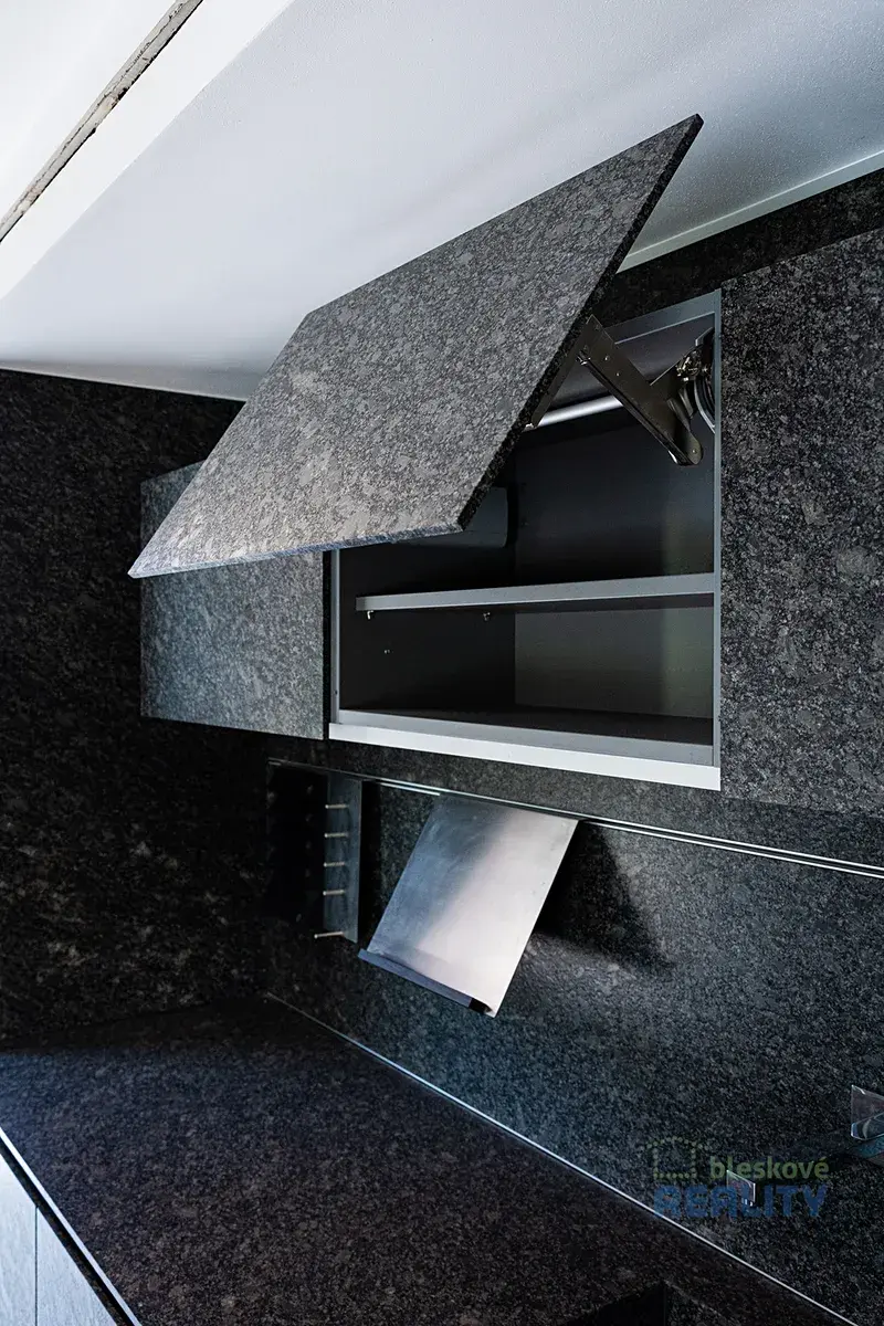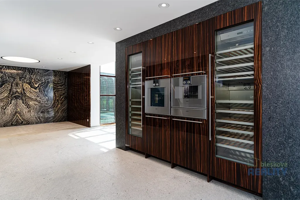 - kuchyňská linka z kartáčované a vypalované žuly s vestavnými spotřebiči Gaggenau