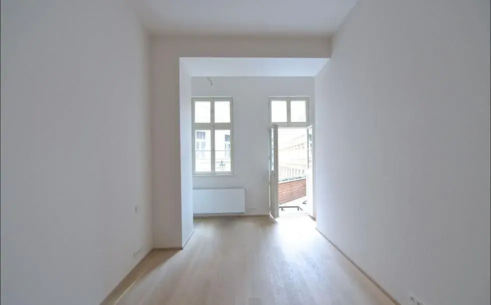 Reprezentativní, světlý byt 2+kk (1 ložnice, 1 koupelna), o rozloze 67m2 s terasou, je situovaný v 1. patře renovované rezidenční budovy s výtahem, na Novém Městě Praha 1, v Petrské ulici.