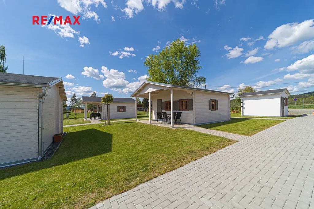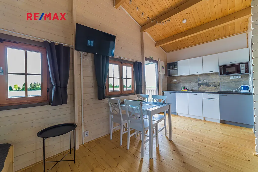 1 provozní chatka - Slouží jako zázemí recepce pro pohodlný chod resortu.
