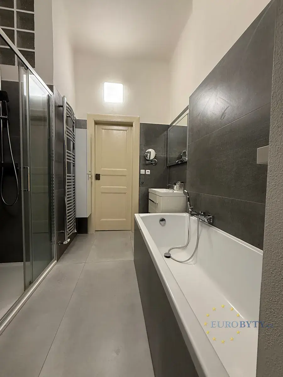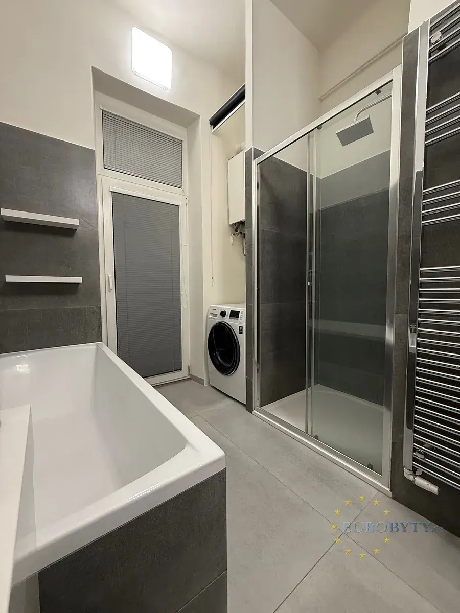 Dovolujeme si Vám exkluzivně nabídnout k pronájmu kompletně rekonstruovaný bytu 2+1 65,6 m2 + 1,5m2 balkónek ve 4 patře bez výtahu. Ihned za vstupními dveřmi je předsíň ze které je přístup do všech místností. Tato předsíň má snížený strop, kde je vybudován úložný prostor. Byt je vybaven kuchyňskou linkou se všemi základními spotřebiči (lednice s mrazákem, myčka nádobí., trouba, varná deska + pračka v koupelně). Dispozice bytu je velmi dobře řešena, kde oba pokoje mají samostatné dveře a jsou neprůchozí. Koupelna je nadstandartní a moderně vybavená, kde nechybí vana a sprchový kout. Z této koupelny je pak přístup na malý balkónek. Okna bytu jsou situována na jižní a severní stranu a jsou opatřená žaluziemi. Vytápění a ohřev vody vlastním plynovým kotlem. Metro Českomoravská jen 5 minut pěšky, stejně jako O2 Aréna. Cena za pronájem 27.000,Kč + vyúčtovatelné poplatky 1.700,Kč a vlastní spotřeba elektřiny a plynu. Možnost k bytu pronajmout parkovací stání za 2.500,Kč. Ihned volný a připraven k nastěhování. Vratná kaucejistota 29 tis, RK 30 tis + DPH. Možno nabídnout i garážové stání nad rámec nájmu cena 2.500Kč ve vedlejším domě. V případě zájmu je majitel bytu ochoten byt dozařídit dle dohody.