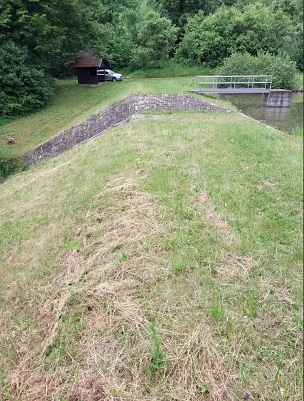 Pacht vodní nádrže "VN Horňansko", situované na parcelách p. č. st. 446/1 - zastavěná plocha - hráz a p. č. 813 - vodní plocha - zátopa v k. ú. Slopné k extenzivnímu chovu ryb, na dobu určitou 5 let. Průtočná vodní nádrž se nachází v říčním kilometru 1,597 vodního toku Horní Olšava, správce toku LČR s.p. Nádrž je vybavena požerákem s obslužnou lávkou a čelním bezpečnostním přelivem. Přístup k vodnímu dílu je po zpevněné obecní komunikaci. Na nádrži není vyhlášen rybářský revír. Vodní dílo je propachtováno s termínem ukončení pachtu ke dni 27. 4. 2026.