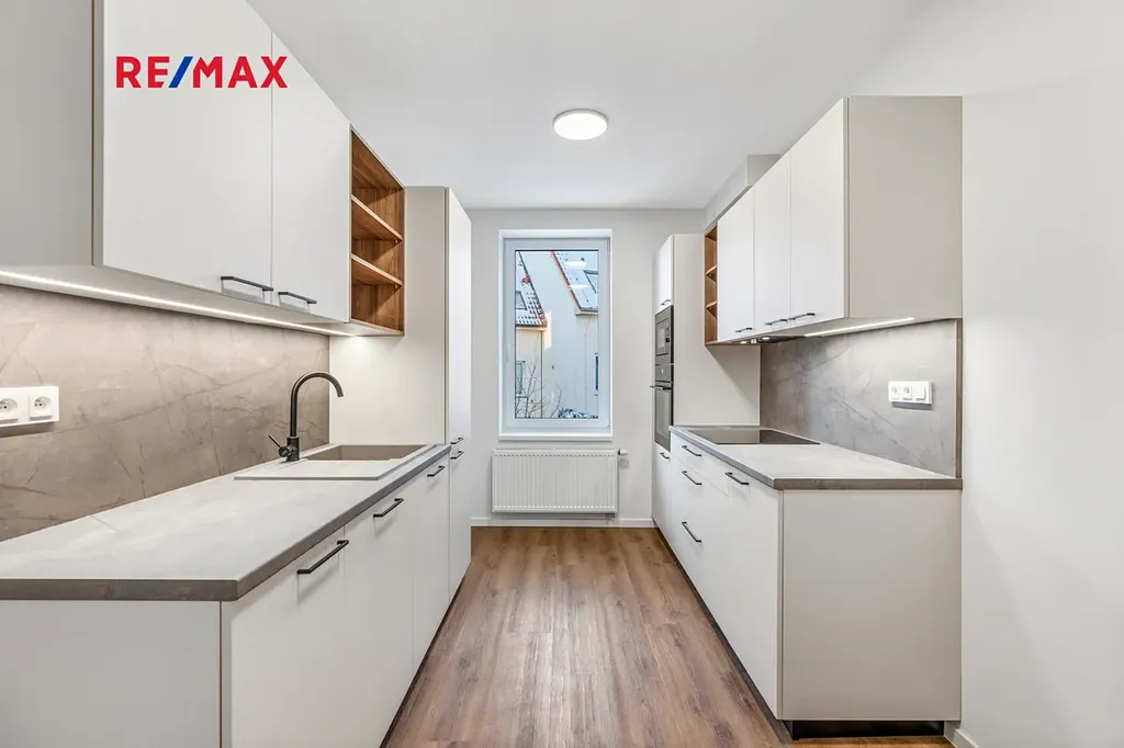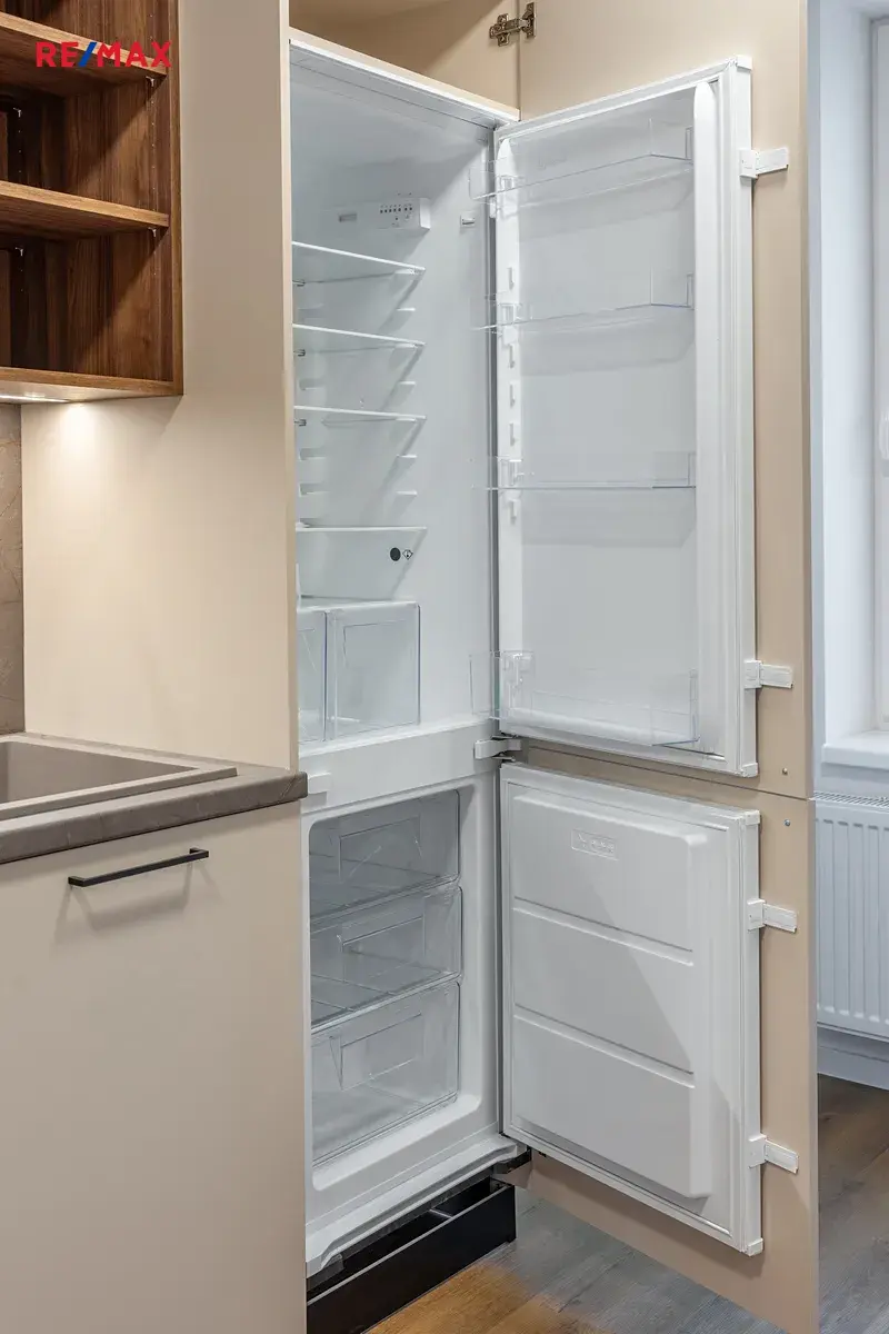 Interiér bytu je vybaven novou prémiovou kuchyňskou linkou zn. Hanák včetně vestavných spotřebičů zn. Electrolux (lednice a oddělený mrazák, myčka, trouba, mikrovlnná trouba a indukční deska). Byt je vytápěn individuálně novým elektrickým kotlem.