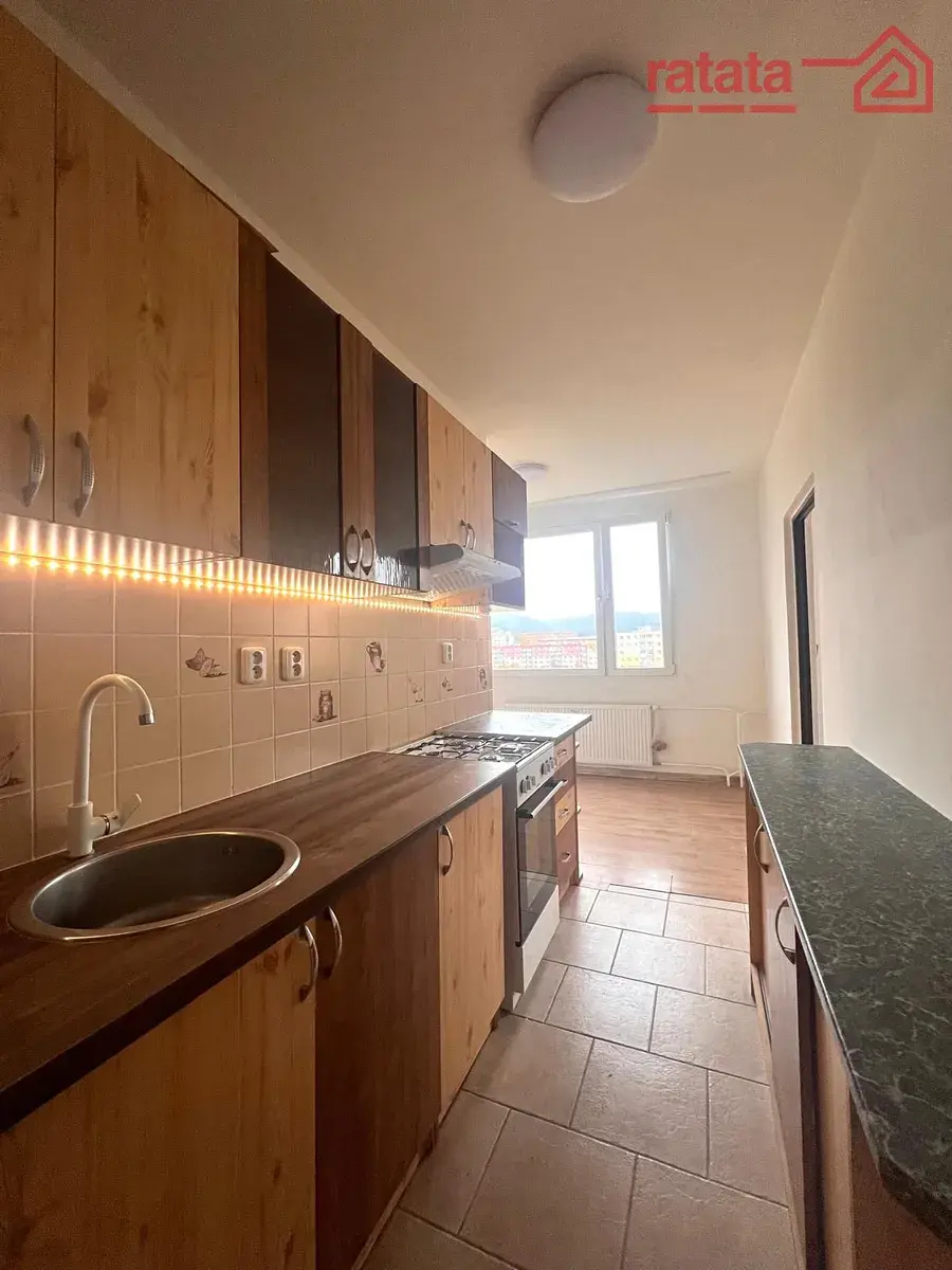 Je zde kuchyňská linka, nový plynový sporák, sprchový kout s umyvadlem a WC. Na podlahách je položena plovoucí podlaha a dlažba. Byt je volný k nastěhování IHNED.