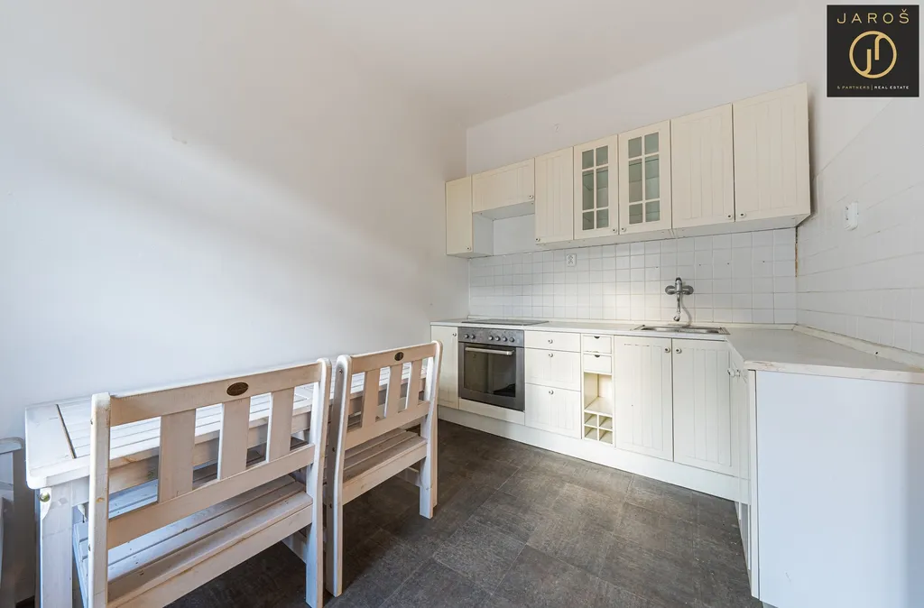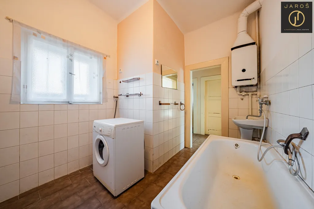 Najdete zde tři podlaží - v podzemním podlaží je sklep o velikosti přibližně 12m2, v prvním nadzemním podlaží je obývací pokoj s přímým vstupem na zahradu, samostatná kuchyně, šatna, prostorná koupelna a samostatná toaleta. V podkroví jsou dvě ložnice, obě situované do zahrady, a malá šatna. Nad tímto podlažím je možné využít i půdní prostor.