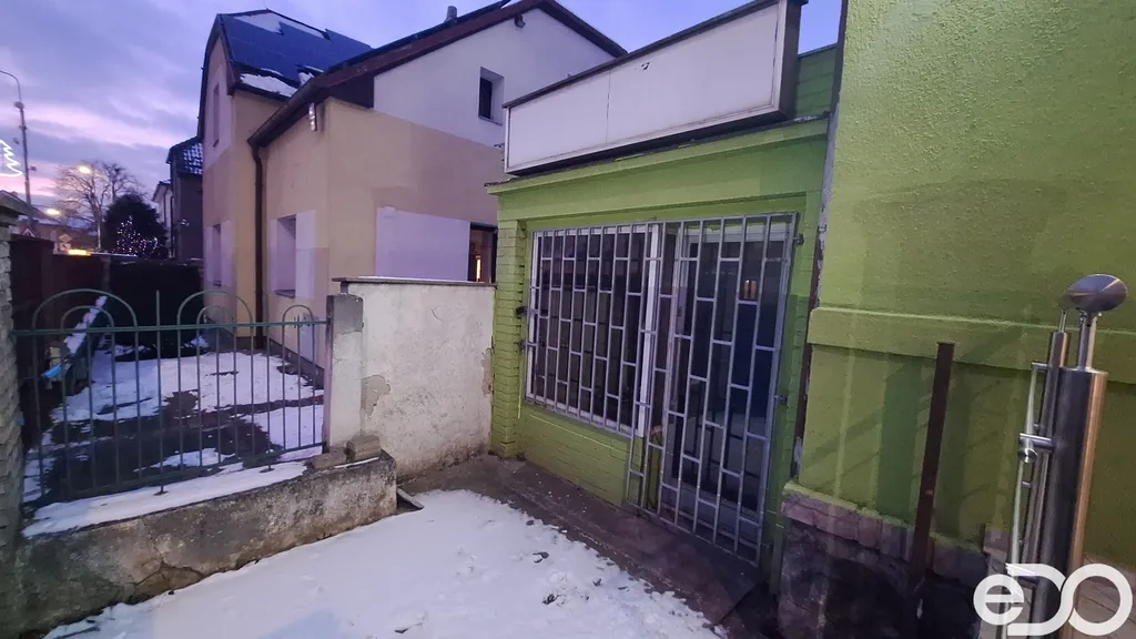 K prostoru náleží také malá oplocená předzahrádka, vhodná například pro vystavení zboží, sezónní prezentaci nebo jako doplňkový venkovní prostor.