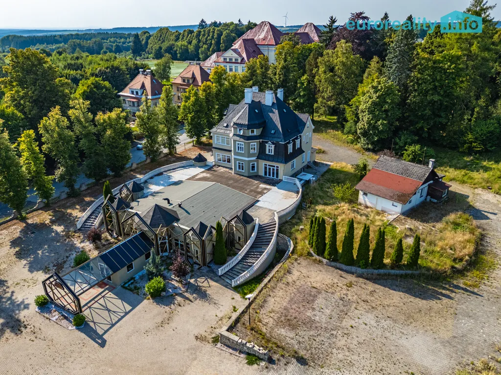 Hlavní objekt je trojpodlažní s jedním podzemním podlažím, kombinuje historickou vilu s moderní přístavbou a disponuje velkorysými prostory které jsou vhodné k široké škále využití.
