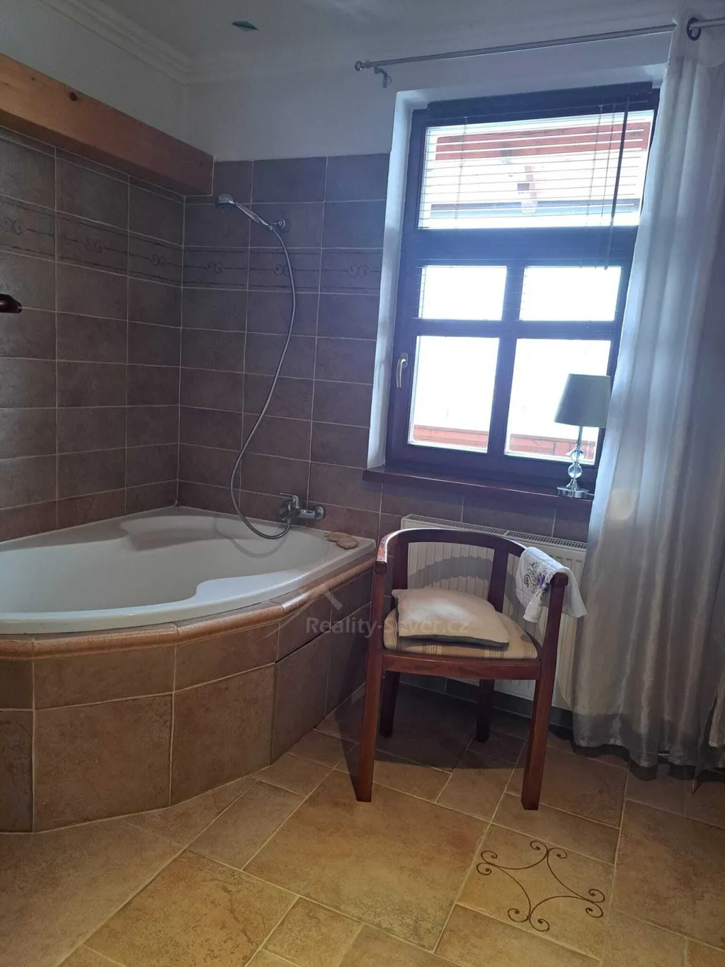 Podkroví je obytné se třemi střešními okny a je zatepleno vatou 16 cm. Jsou zde krbová kamna JOTUL, zavedeno ústřední topení, podlaha plovoucí dýha buk.