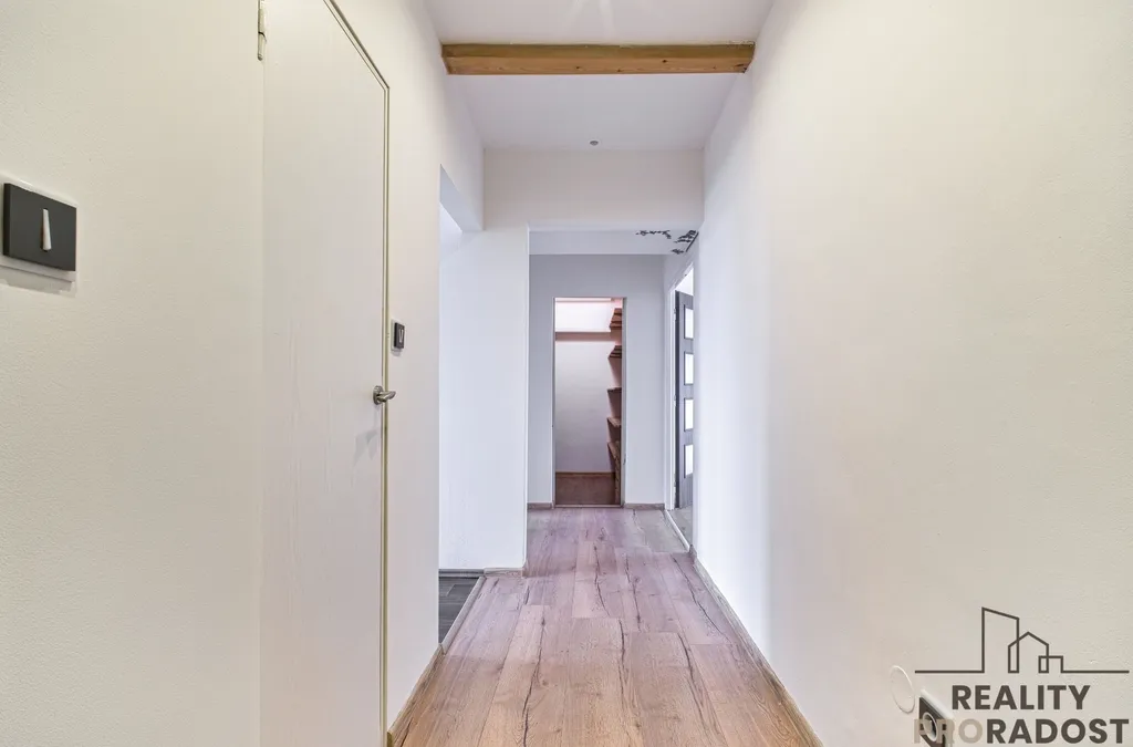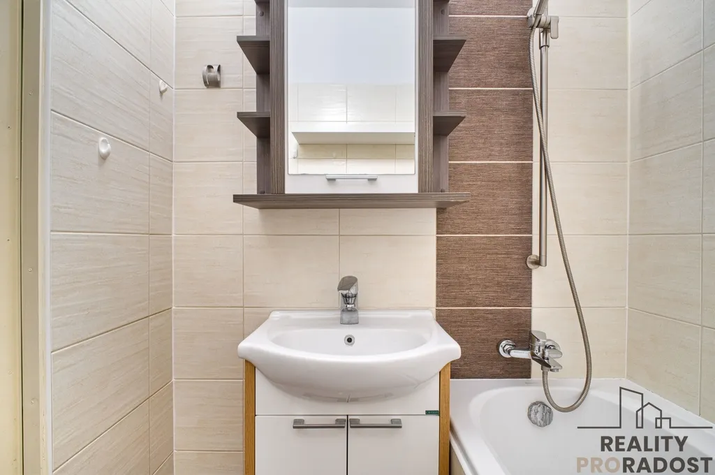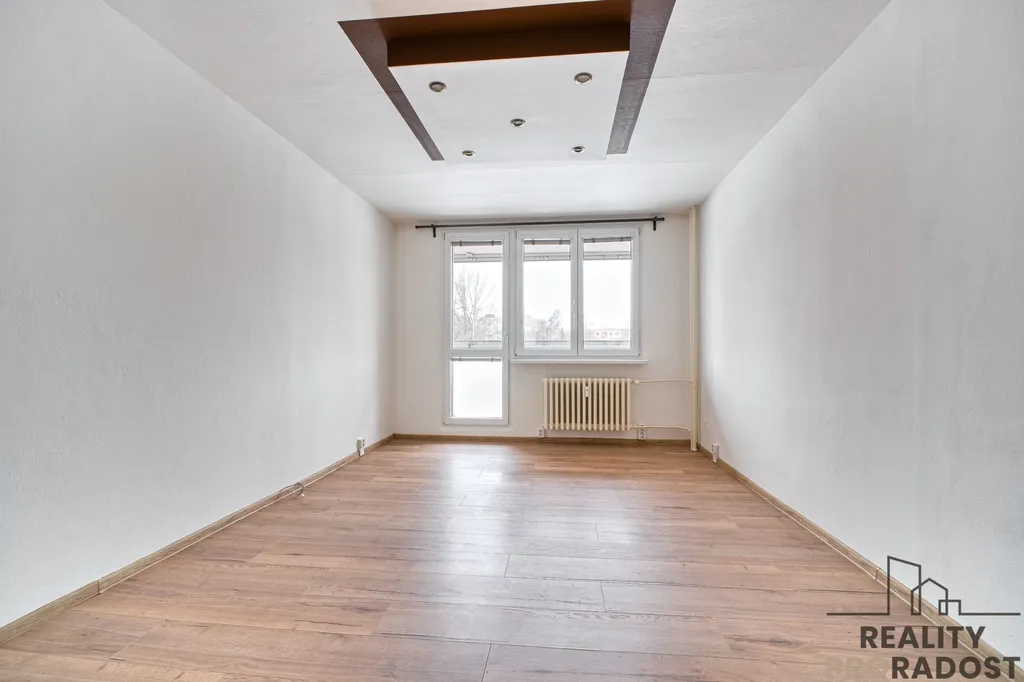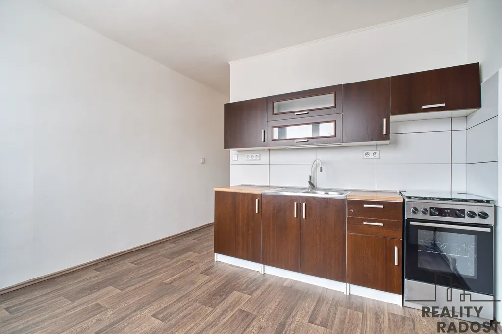 V kuchyni o velikosti 12 ,2 m se nachází kuchyňská linka včetně sporáku a nerezového dřezu s baterií. Kuchyně nabízí dostatek prostoru i pro umístění jídelního stolu. Obývací pokoj čítá velikosti 5,3 x 3,5 m, je z něj výstup na zasklenou lodžii o velikosti cca 4 m2, orientace na jihovýchod. Ložnice je orientována na severozápad a nabízí rozměry 4,5 x 3,5 m, nachází se zde vestavěná skříň. Výhodou je praktická komora o velikosti 2,5 m2. K bytu náleží sklepní kóje.