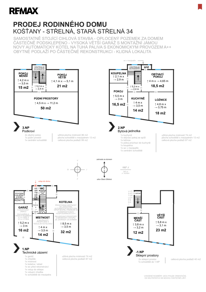- 3. podlaží: dva samostatné pokoje s radiátory + půdní prostor