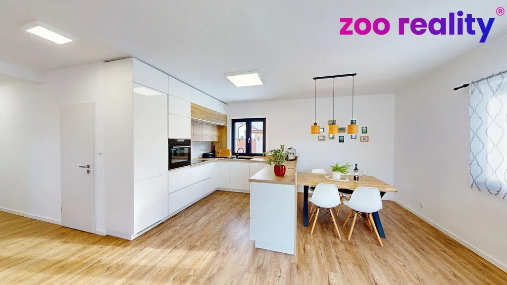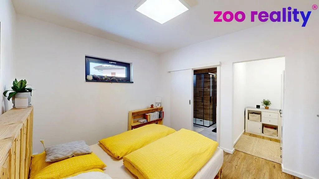 Dům s užitnou plochou 120 m² o dispozici 3+kk zahrnuje prostorný obývací pokoj propojený s jídelním koutem a kuchyní. Dále pak ložnici, která nabízí i komfort navazující koupelny a šatny. Následně pokoj, koupelnu, samostatné WC, praktickou spíž a technickou místnost. K dispozici je i půda jakožto úložný prostor.