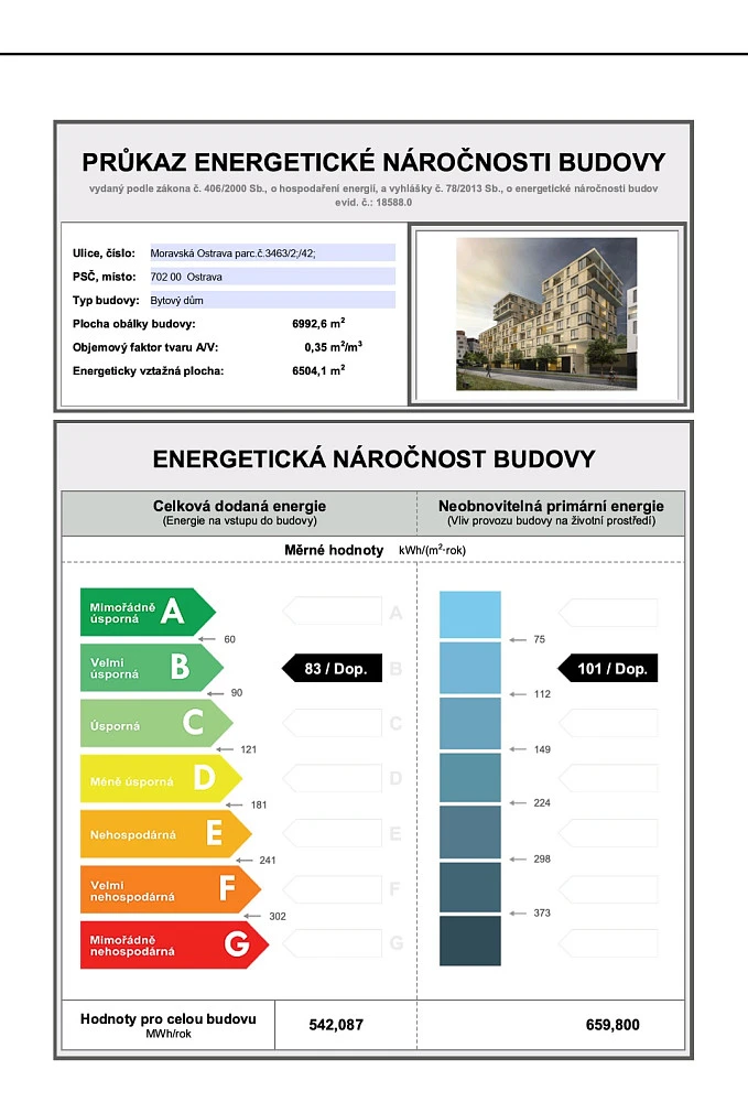 | Ukazatel energetické náročnosti | 83 kWh/m2 za rok |
