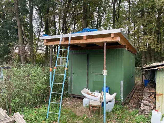 Na zahradě je postavená chatka s malou kuchyňskou linkou a novými kamny. Na pozemku se nachází solární sprcha a studna.