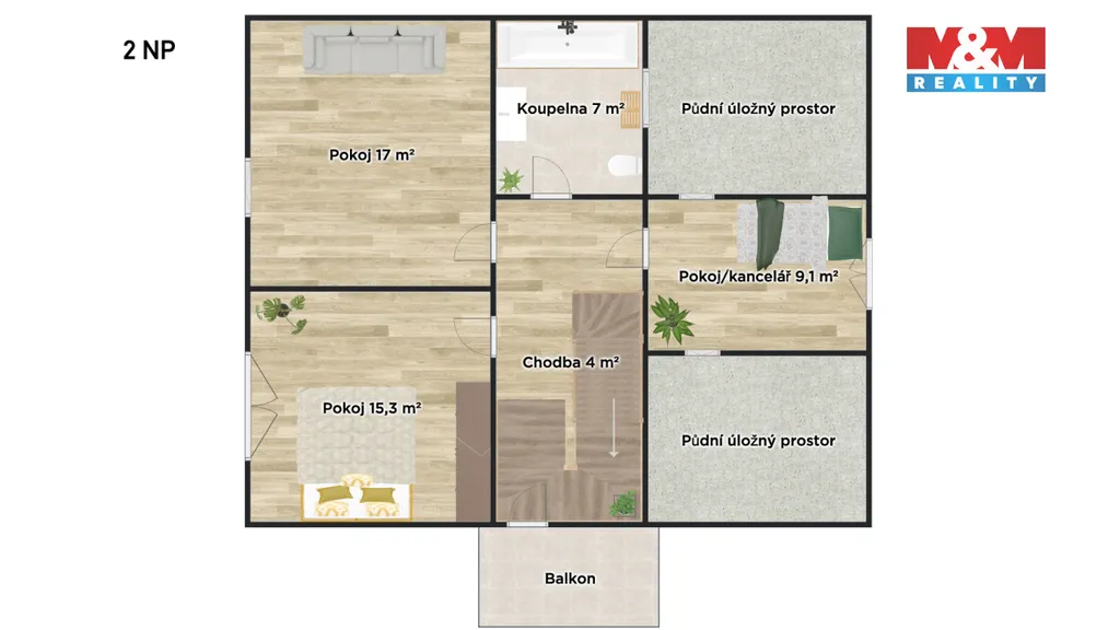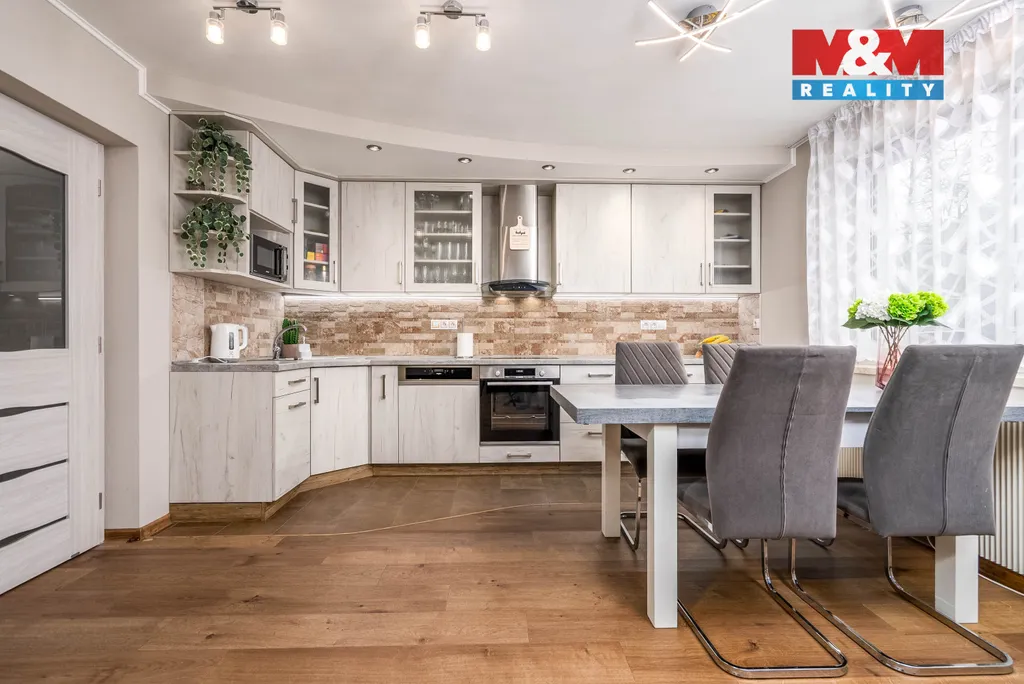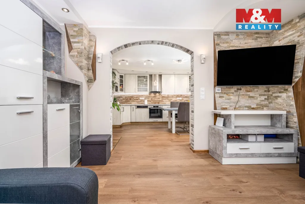 Dům má praktickou dispozici 5+1 a nabízí 128,4 m² užitné plochy, takže každý člen rodiny zde najde svůj prostor.