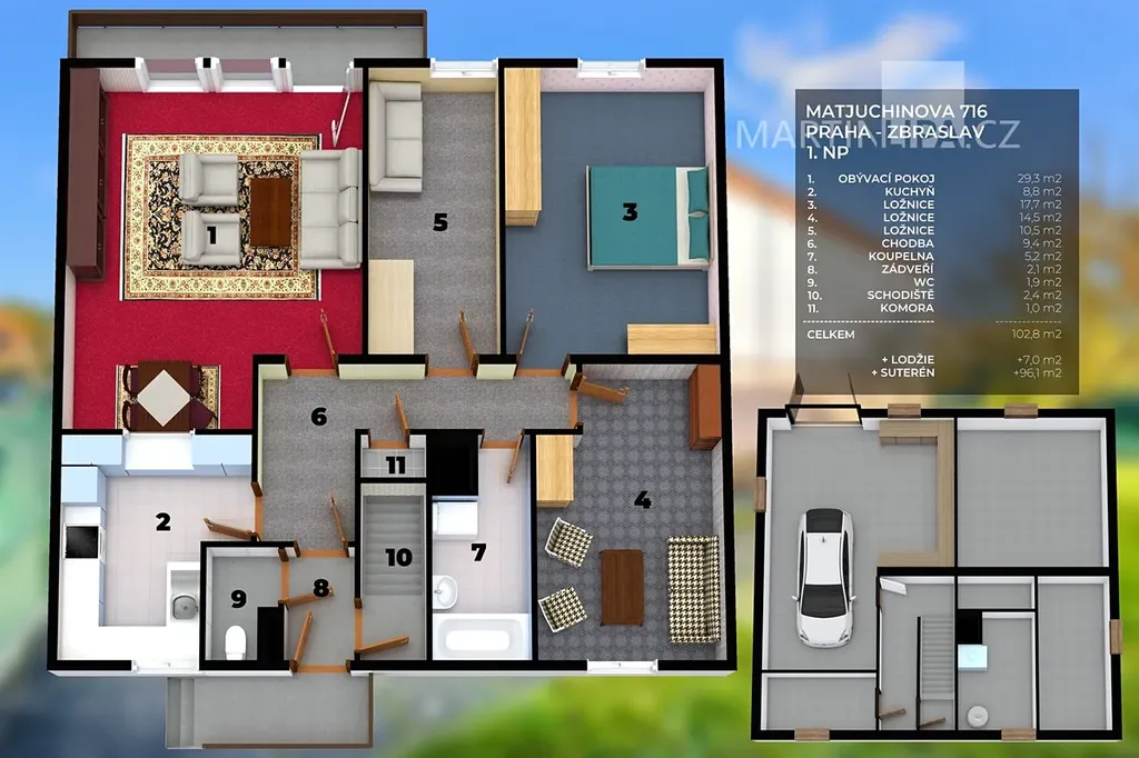 • nebo jeho horní část snadno odstranit a na původním půdorysu s využitím suterénu postavit zcela nový, moderní rodinný dům, který bude odpovídat dnešním nárokům i hodnotě lokality
