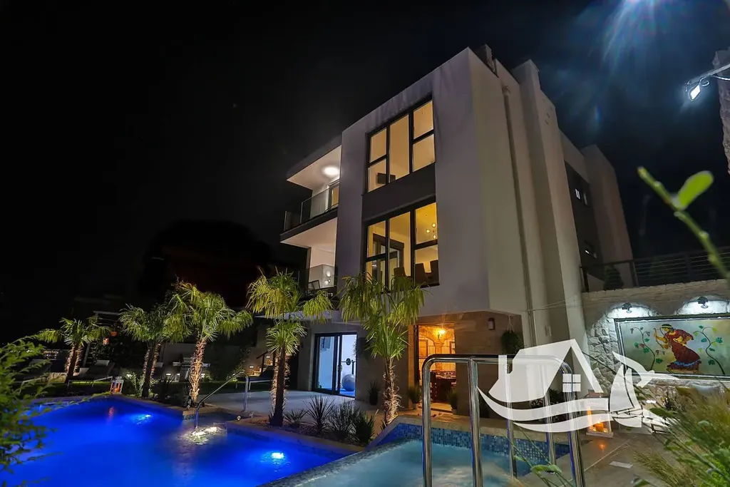 Všechny místnosti jsou vybaveny klimatizací a podlahovým vytápěním. Vila je zařízena designovým nábytkem, kvalitním osvětlením a koberci, které podtrhují elegantní a nadčasový styl interiéru.
