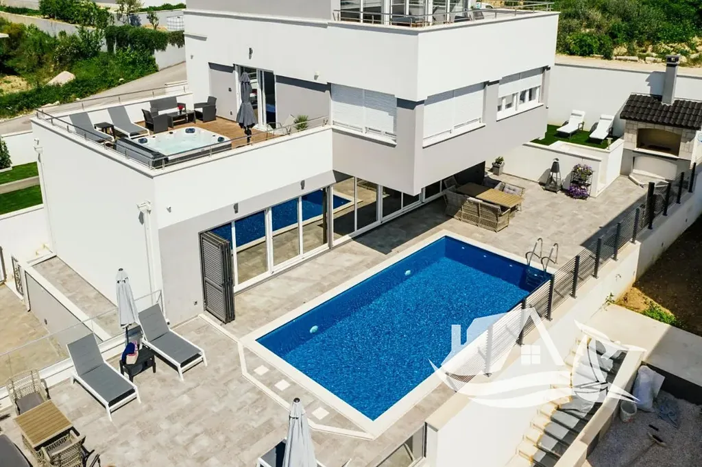 Tato krásná dvoupodlažní vila se nachází v Podstraně, jedné z nejvyhledávanějších rezidenčních lokalit v okolí Splitu, a nabízí úchvatný výhled na moře, který se jen tak neokouká. Nemovitost je ideální kombinací moderního bydlení, středomořské atmosféry a silného investičního potenciálu.