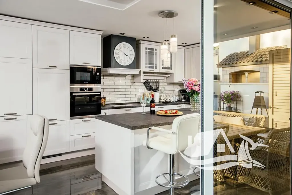 Nemovitost je vybavena klimatizací ve všech obytných prostorách, vysokorychlostním Wi-Fi připojením, soukromým parkováním, posilovnou a vířivkou umístěnou na balkoně s výhledem na moře, která dodává domu výrazný prvek luxusu. Vše je navrženo tak, aby vila nabízela maximální pohodlí a bezstarostné užívání po celý rok.