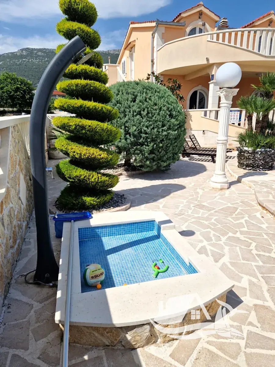 Tato samostatná vila se nachází ve velmi vyhledávané části Kaštel Stari a nabízí výjimečnou kombinaci prostoru, klidu a dlouhodobé hodnoty. Dům je situován na pozemku o velikosti přes 1 000 m², má celkovou brutto plochu přibližně 350 m² a je vzdálený zhruba 1,5 kilometru od moře. Poloha zajišťuje soukromí a ticho, zároveň však rychlou dostupnost pláží, centra města i hlavních dopravních tahů.