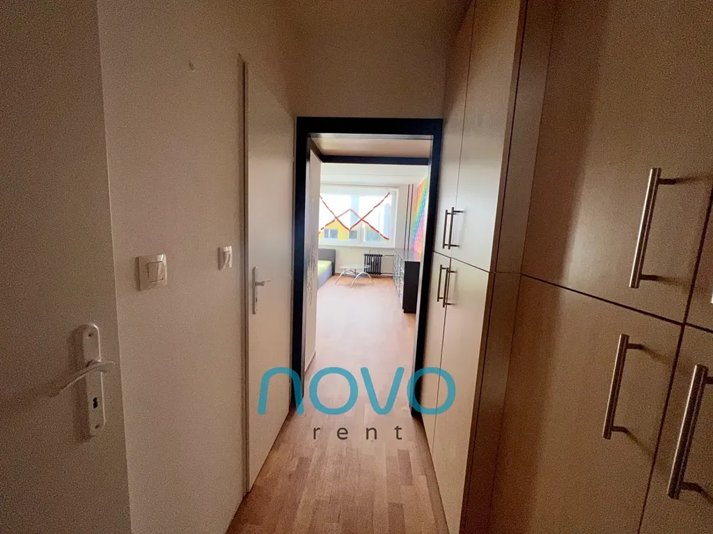 Pronájem částečně zařízeného bytu 2+kk o celkové rozloze 47 m². Byt se nachází ve 3. podlaží panelového domu v ulici Vazovova, Praha Modřany.