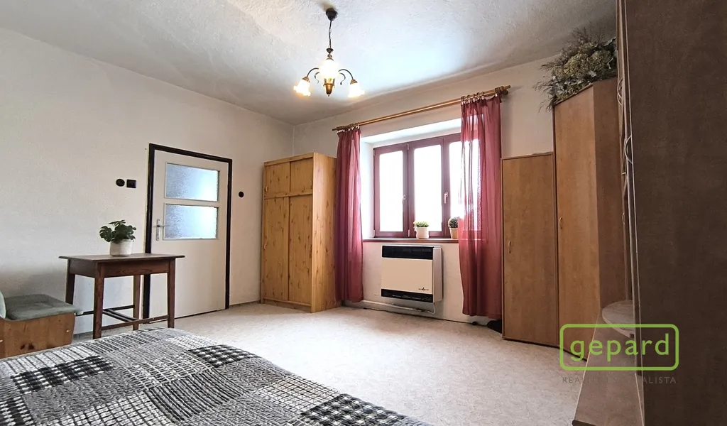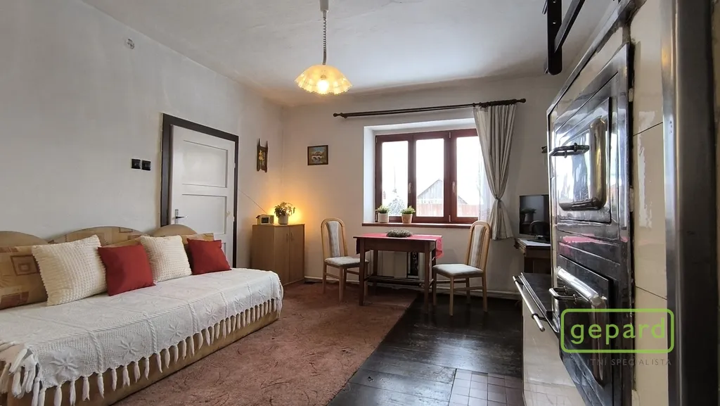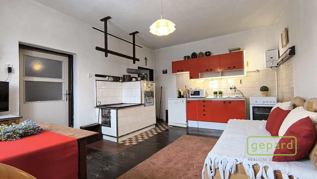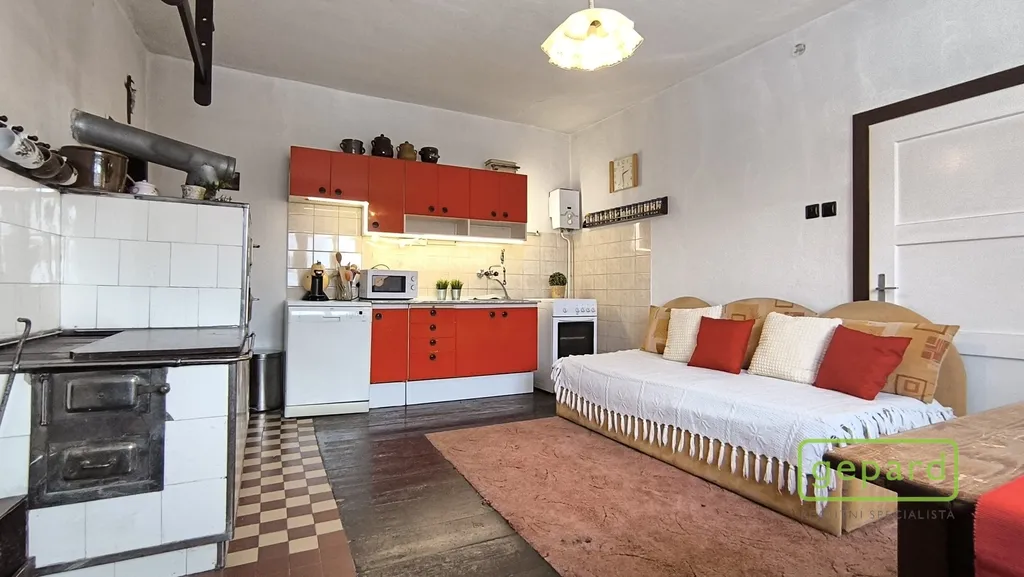 Interiér tvoří dvě větší obytné místnosti, ložnice a kuchyně s tradičními kachlovými kamny, která v chladnějších dnech navodí příjemnou atmosféru venkovské chalupy. K dispozici je také menší pokoj, koupelna se sprchovým koutem a toaletou, dvě komory a vstupní chodba s předsíní.