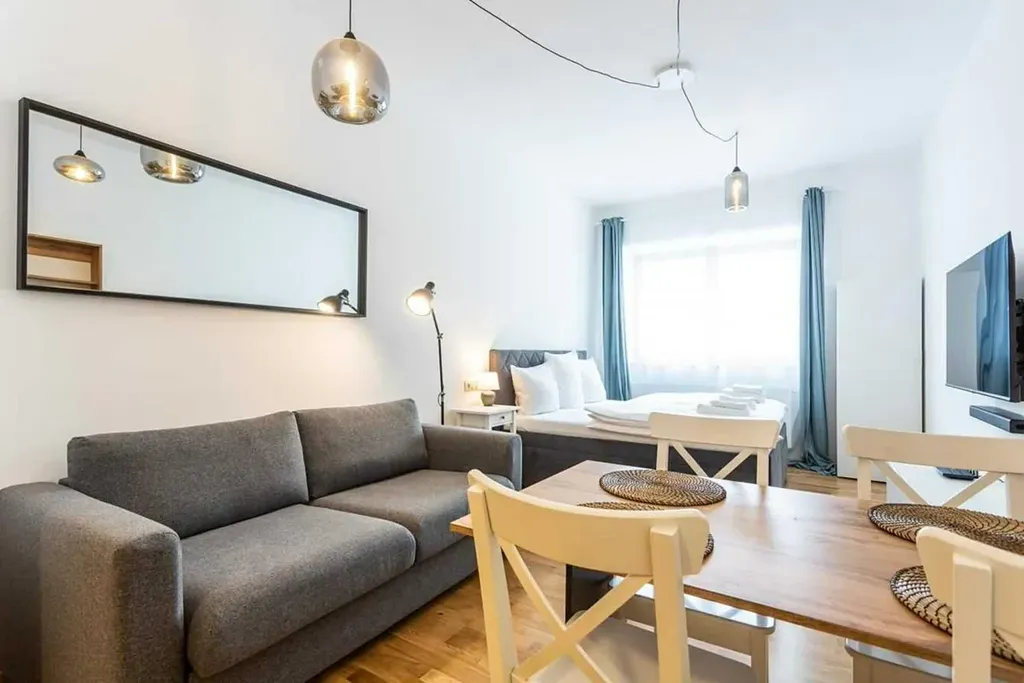 Centrem bytu je prostorný a světlý obývací pokoj s moderním kuchyňským koutem a dalším nábytkem na míru. Pokoj je prostorný a najdete v něm plnohodnotné dvojlůžko i rozkládací pohovku. Vkusně a kvalitně dokončená koupelna a WC nabízí spoustu prostoru. K bytu náleží soukromé parkovací stání za závorou (v ceně bytu) a velkorysý prostor pro sportovní vybavení - k dispozici je nejen prostorná kolárna, ale také soukromá skříň na lyže včetně sušáku na lyžáky.
