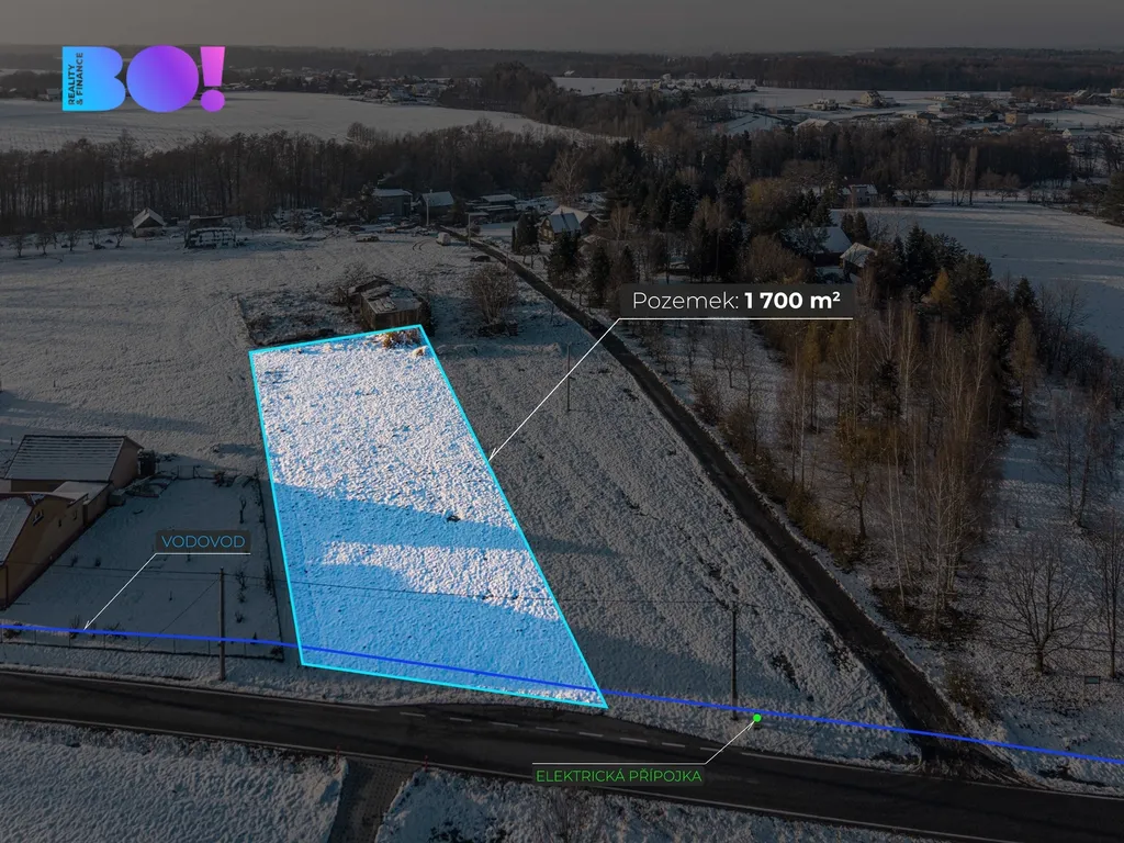 Velkou výhodou je již hotová přípojka elektřiny a vodovod je na hranici pozemku (není potřeba žádných protlaků pod cestou apod.).