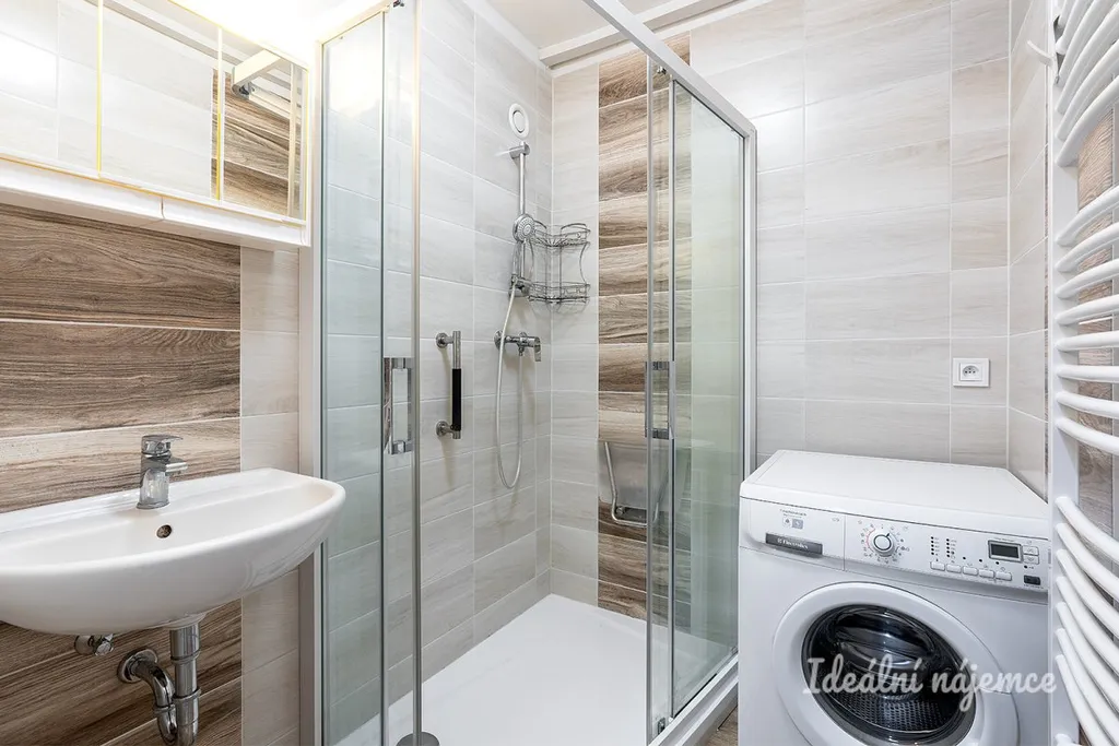 Interiér je nabízen jako nezařízený, což budoucím nájemníkům poskytuje skvělou příležitost uzpůsobit si domov přesně podle vlastního vkusu a potřeb. Srdcem bytu je kuchyně vybavená jídelním koutem a všemi potřebnými spotřebiči, včetně lednice s mrazákem, elektrické trouby, varné desky a digestoře. Obývací pokoj je částečně vybaven sedací soupravou a konferenčním stolkem, přičemž zbývající prostor lze variabilně doplnit. Druhý samostatný pokoj je ideální jako ložnice či pracovna. Koupelna disponuje sprchovým koutem a pračkou, zatímco toaleta je pro maximální pohodlí umístěna samostatně.