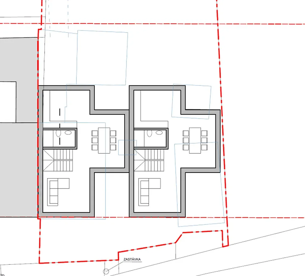 • Dva řadové rodinné domy s dispozicí 4+kk, suterénem a dvěma obytnými podlažími.