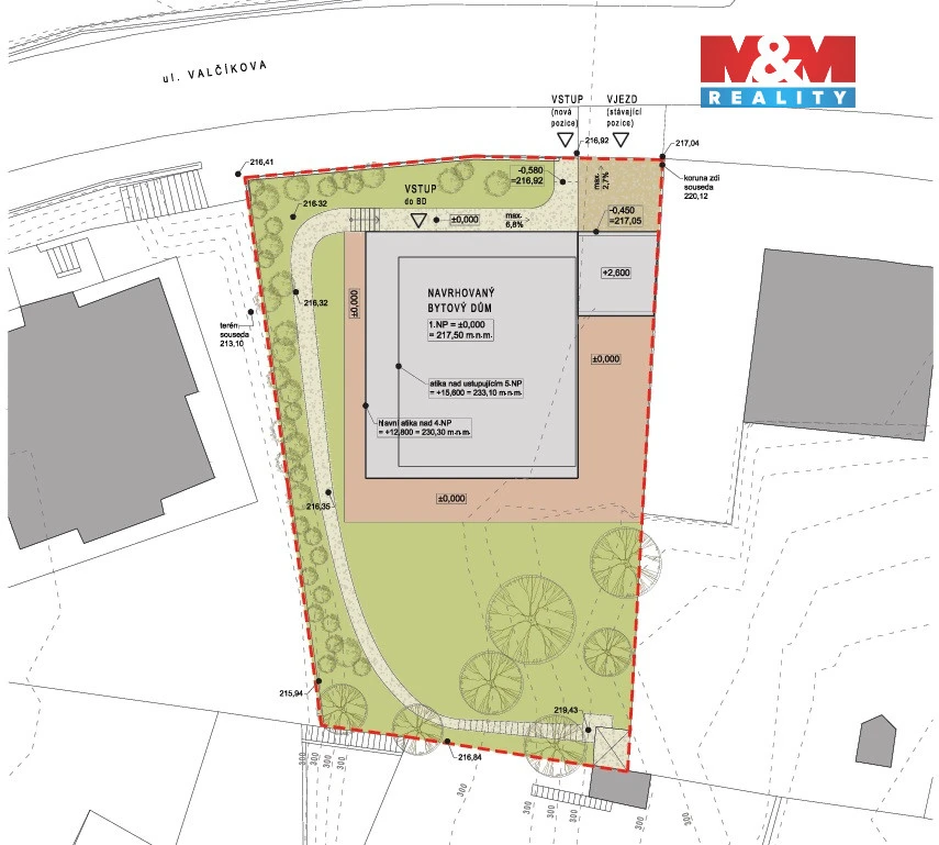Na pozemku se v současnosti nachází starší vila určená k demolici. Projekt bude prodáván včetně kompletní dokumentace a všech pravomocných povolení, tedy demoličního i stavebního povolení, což umožní okamžité zahájení realizace bez další administrativní zátěže. Lokalita nabízí výbornou dopravní dostupnost do centra a kombinaci klidného bydlení.