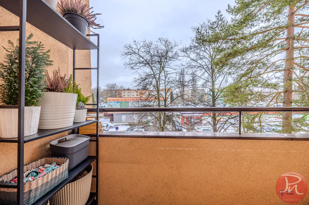 Byt má praktickou dispozici se dvěma samostatnými pokoji, oddělenou kuchyní, koupelnou s vanou, samostatnou toaletou a prostornou vstupní chodbou s dostatkem místa pro úložné řešení. Díky svému uspořádání je byt světlý, vzdušný a působí velmi příjemným dojmem.