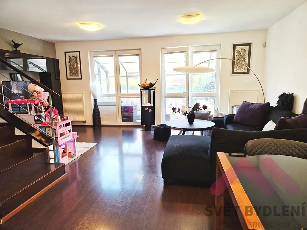 Prostorný obývací pokoj s velkými okny a přímým vstupem do zimní zahrady. Otevřené propojení s moderní kuchyní vytváří příjemný rodinný prostor pro společná setkání. Kuchyňská linka je vybavena kvalitními spotřebiči a množstvím úložného prostoru. Technická místnost s úsporným kondenzačním kotlem zajišťujícím vytápění a ohřev vody. Garáž, aktuálně využívaná jako tělocvična a sklad, s možností navrácení do původní funkce.