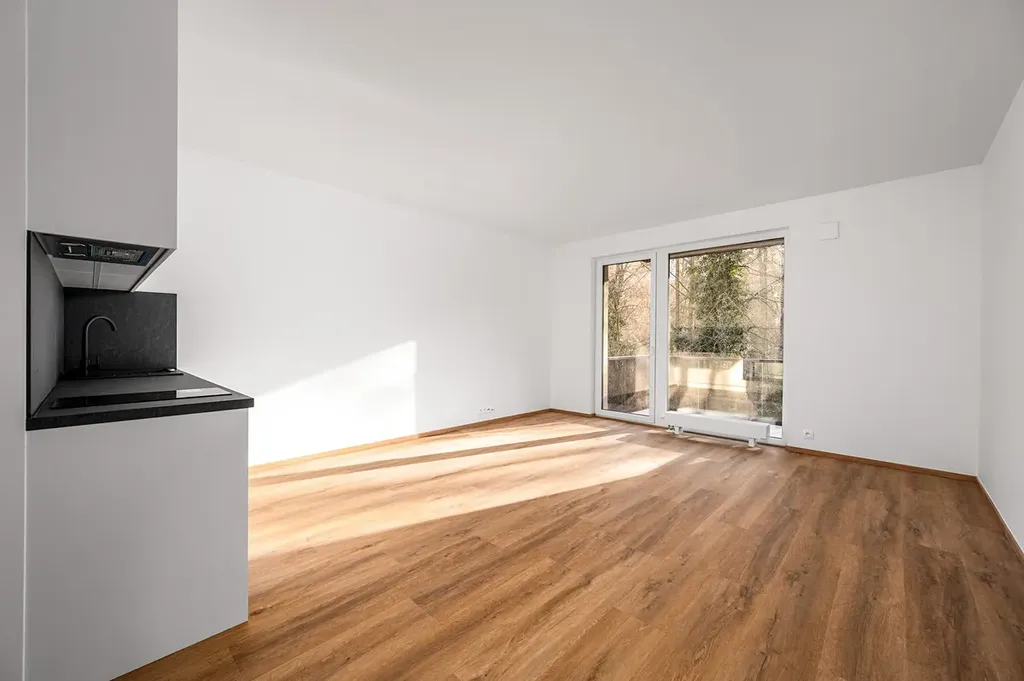 K pronájmu nabízíme moderní byt 1+kk o užitné ploše 42,4 m² s prostorným balkonem o velikosti 4,9 m². Byt je orientovaný na jih přímo do zeleně – výhled do lesa s potokem je přesně ten typ klidu, který se v Praze nevidí každý den. Lokalita u Hostivařské přehrady navíc nabízí skvělé možnosti pro sport i relax, a přitom jste za pár minut u metra i v OC Westfield Chodov.