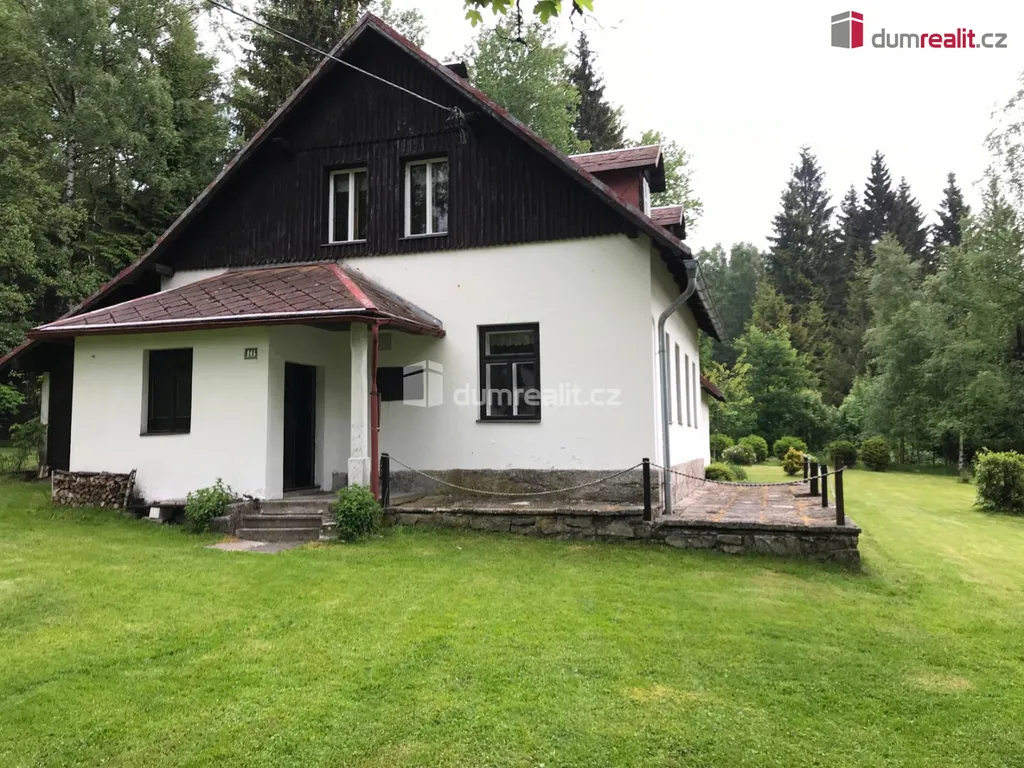 Dumrealit.cz Vám zprostředkuje prodej krásné stylové chaty, "na samotě, u lesa" s terasou a vestavěným podkrovím, v části obce Bernov, v příjemném prostředí osady Vysoká Jedle, Nejdek.